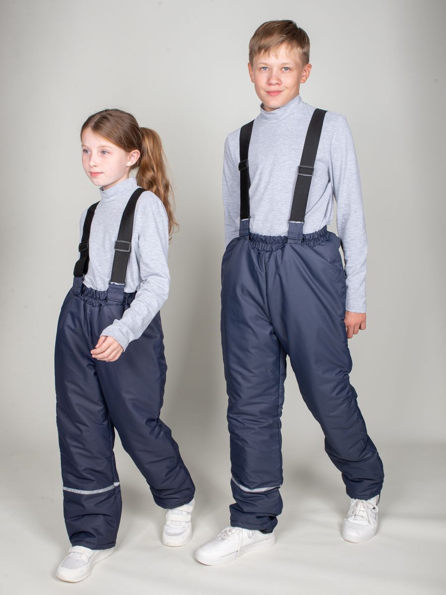 Брюки с регулировкой лямок, без карманов. Утеплитель - синтепон плотностью 80гр/м2, прекрасно сохраняет тепло, а ткань верха dewspo обеспечивает отвод влаги. Наличие светоотражающей ленты обеспечивает безопасность.