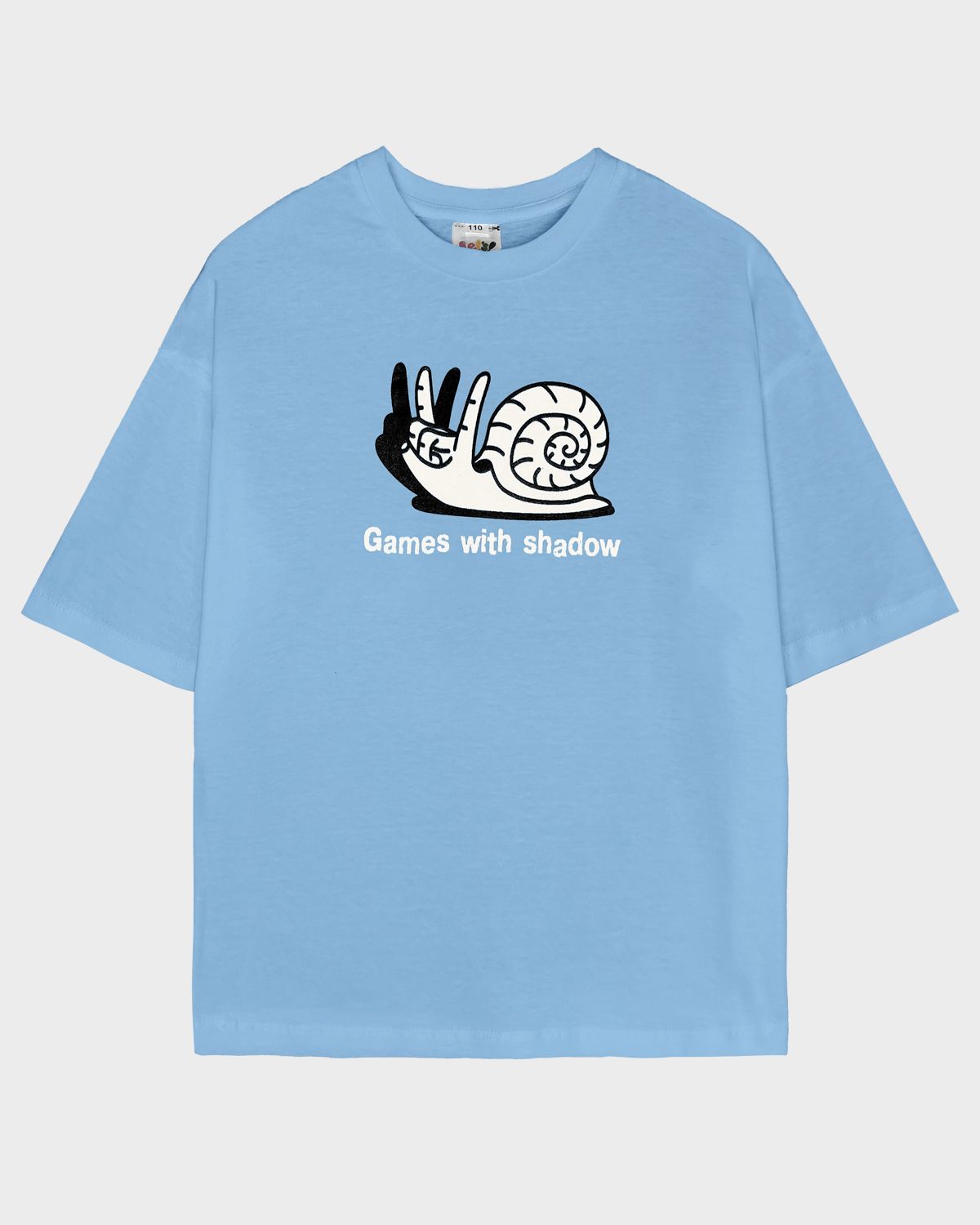 Футболка для мальчика свободного силуэта (оверсайз) с коротким рукавом. Горловина круглая, обработана обтачкой из рибаны. Низ изделия и рукава обработаны швом вподгибку. На полочке принт Шелкография. Надпись переводится как "Игры с тенью".