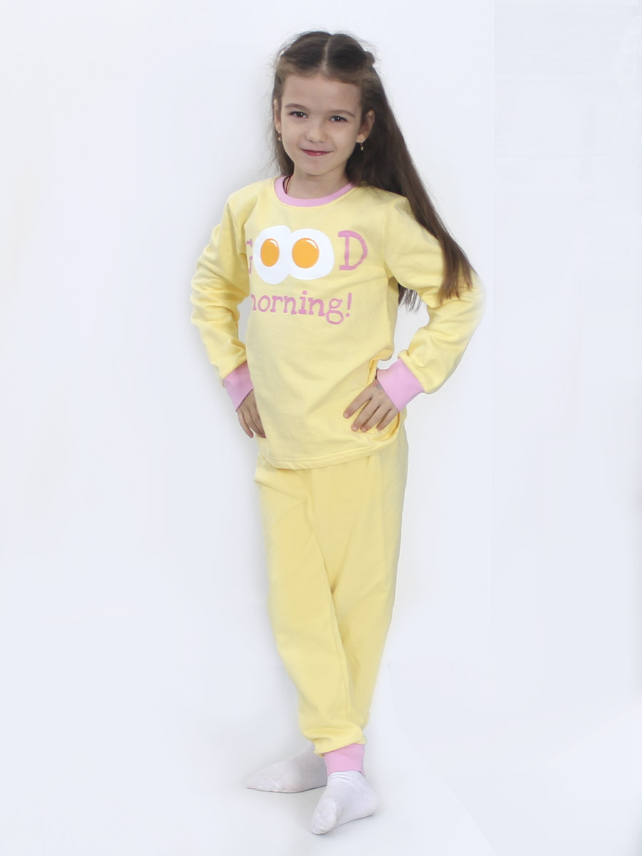 Комплект состоит из лонгслива с длинным рукавом и широких штанов. Он пошит из качественного 100% хлопка узбекского производства, благодаря чему пижама легкая и очень мягкая.