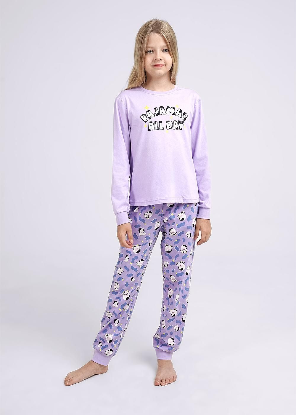 Уютный мягкий комплект из 100% хлопка. Джемпер с эластичной горловиной, манжетами и милым тематичным принтом. Набивные брюки свободного силуэта на манжетах, резинка в поясе для комфортной посадки.