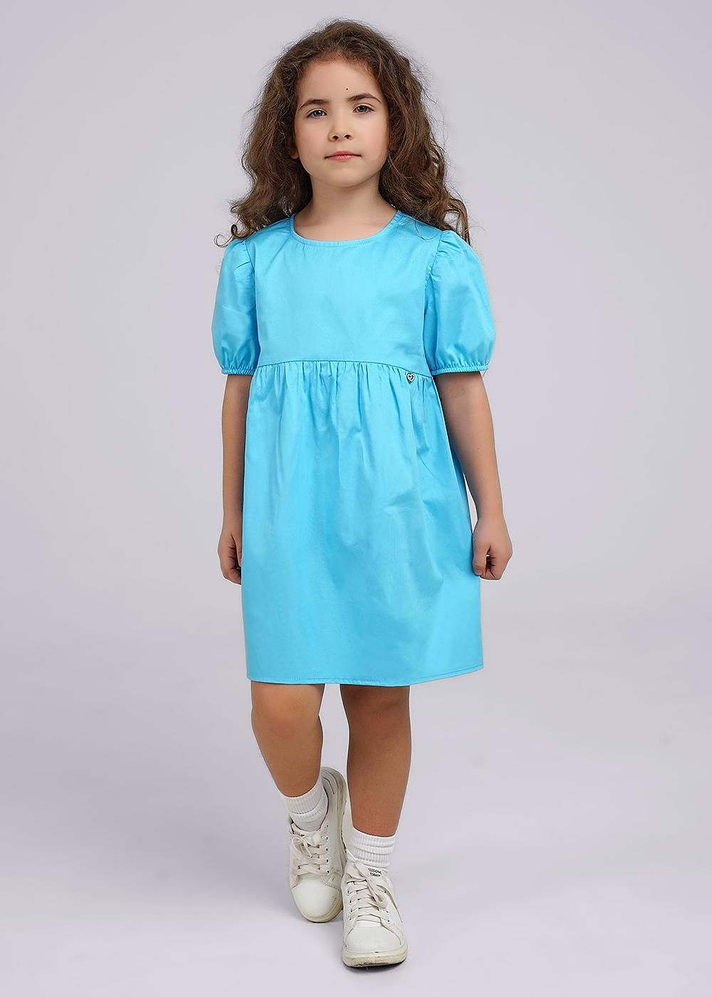 Яркое платье для самых очаровательных девочек! Пышный рукав и юбка придают образу воздушность и легкость. Расклешеный силуэт не сковывает движения. Спереди модель дополнена милым декором. Материал пропускает воздух - прекрасно для знойных летних дней.