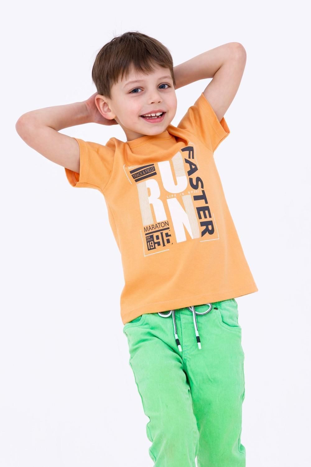 Футболка для мальчика с принтом из высококачественного трикотажного полотна. Оригинальный принт выполнен из стойких текстильных красителей.