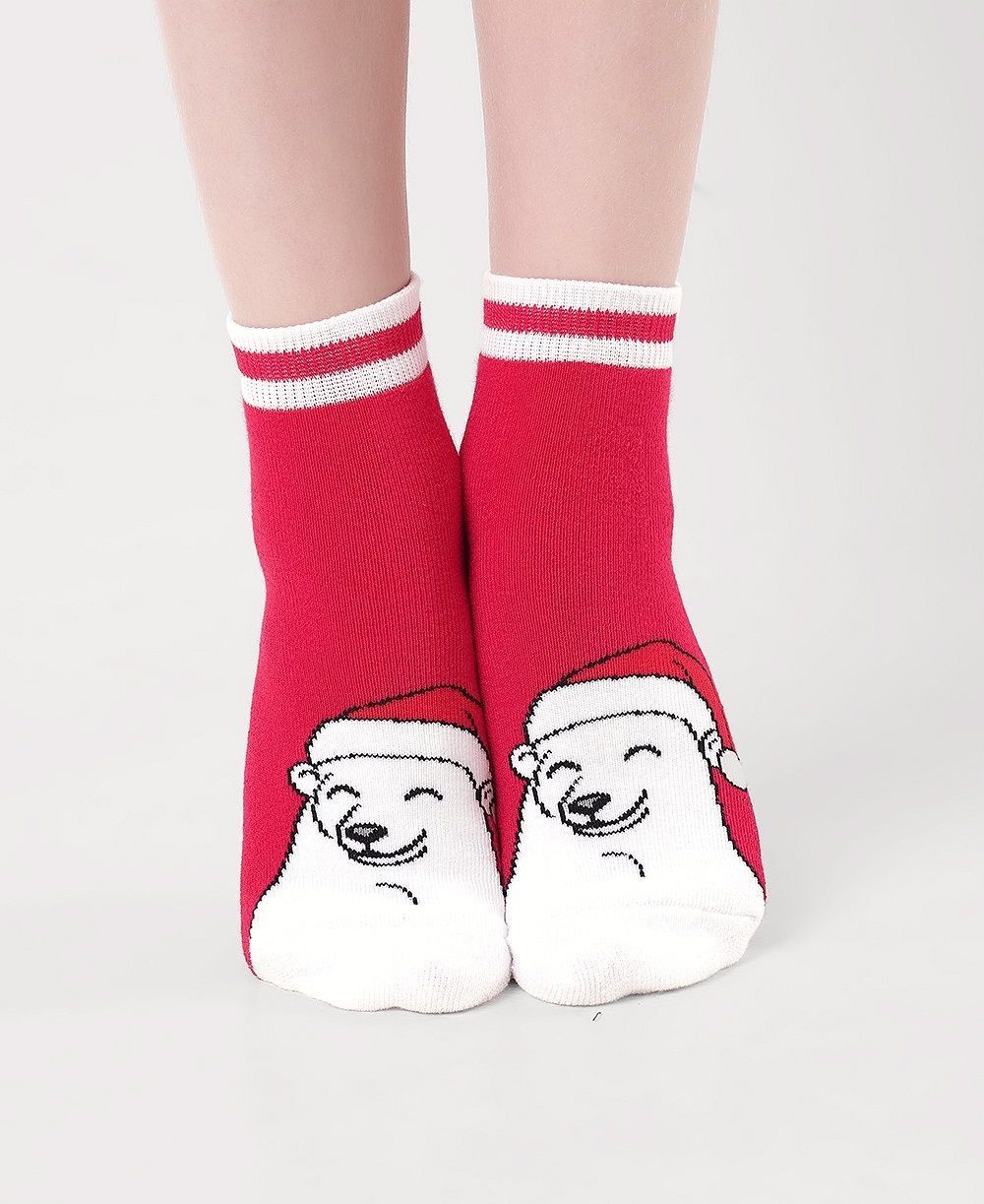 носки детские для мальчика с выделенным мыском и пяткой с рисунком лица деда мороза