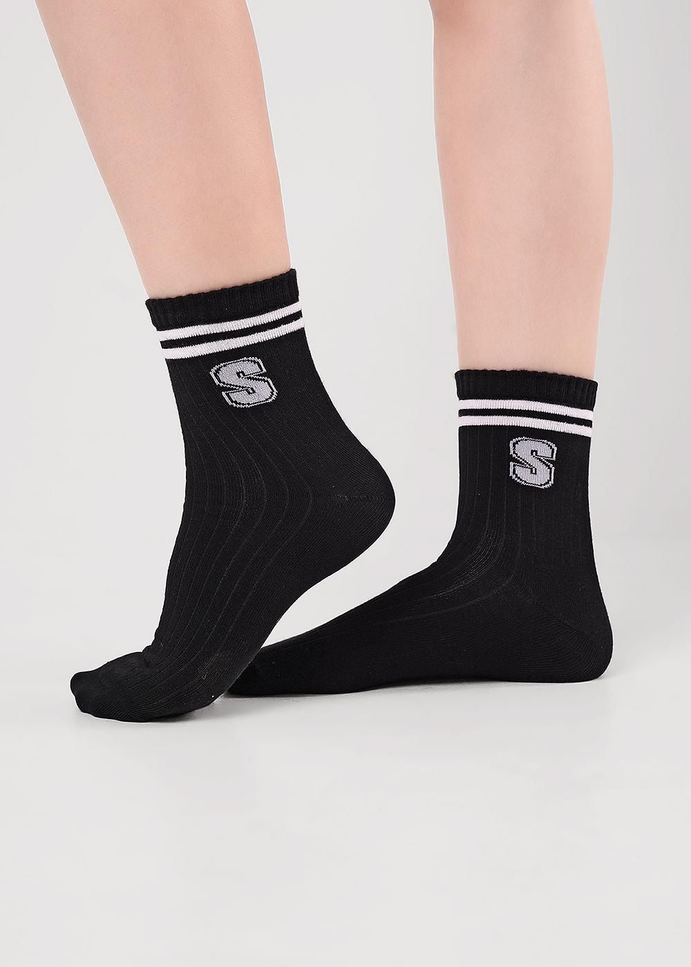 Носки для девочки в лапшу с полосками на паголенке и буквой S