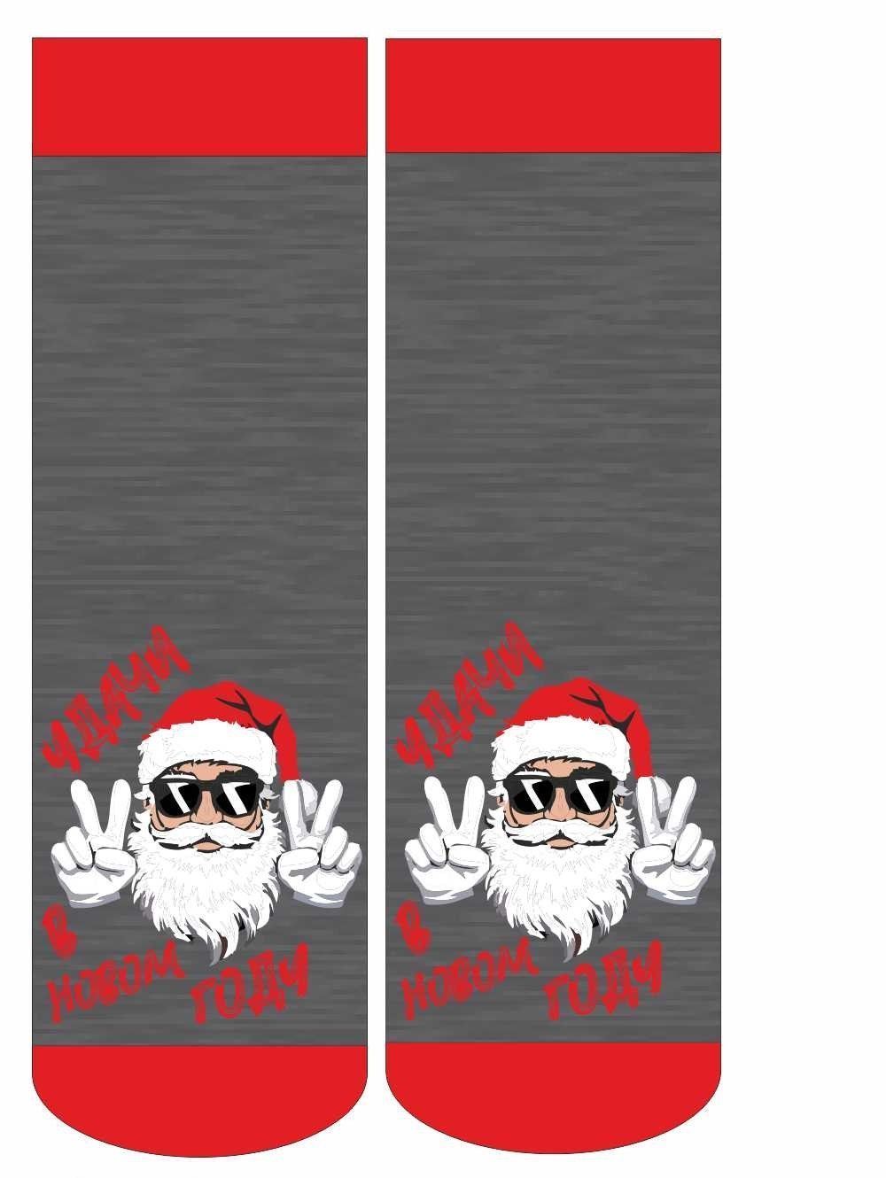 носки детские для мальчика с выделенным мыском и пяткой с рисунком лица деда мороза