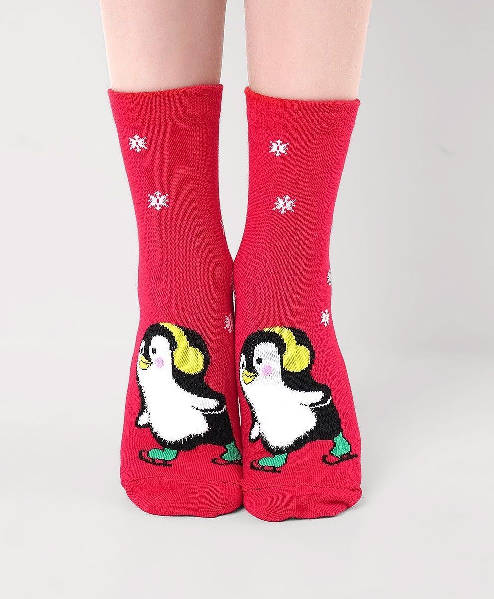 Носки детские с рисунком пингвина, грудка пингвина выполнена из пряди травка