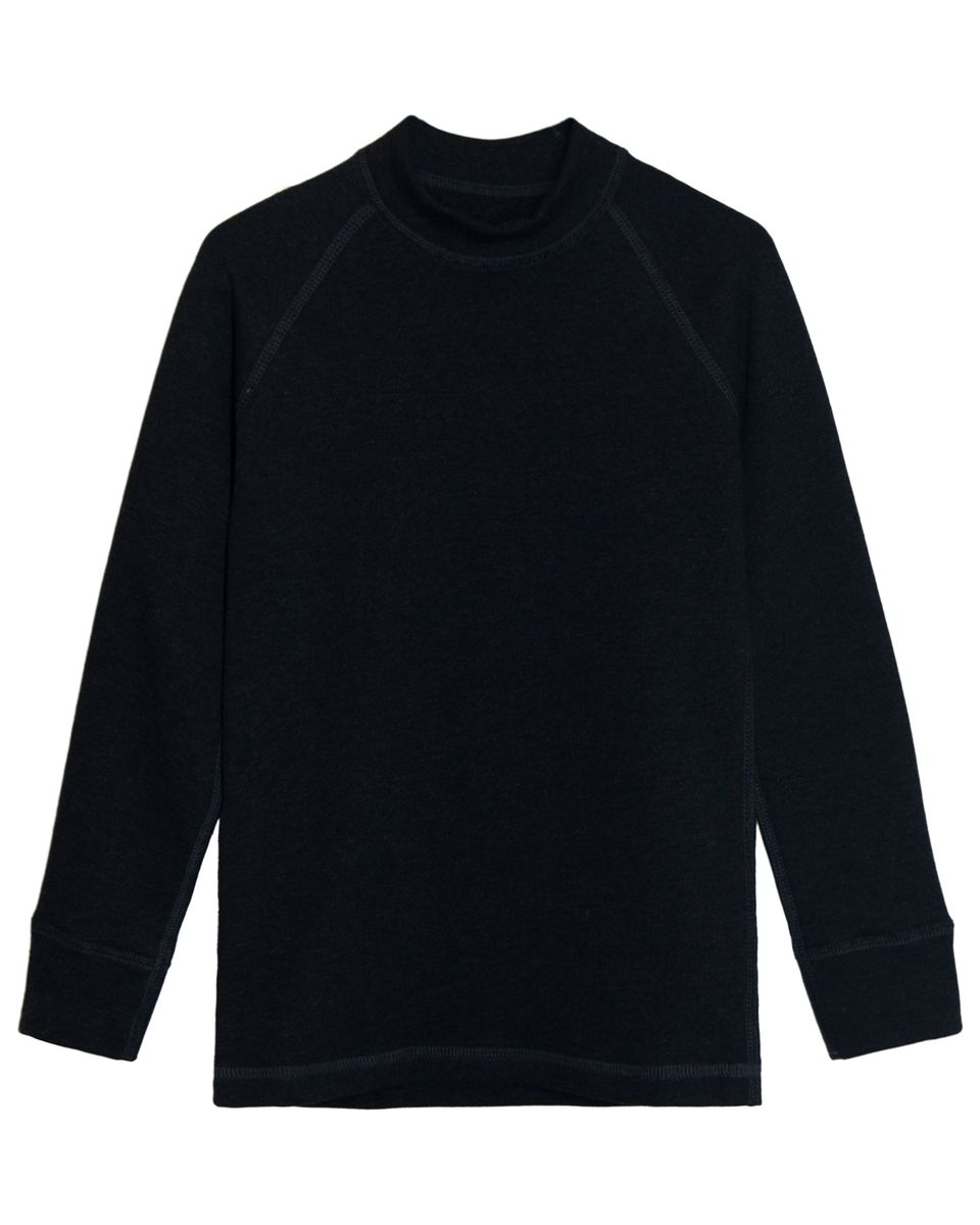 Термобельё для мальчика (джемпер) выполнен из рибаны с начёсом. Горловина круглая обработана воротником из основного полотна. Рукава покроя реглан. По низу рукава выполнены манжеты из основного полотна. Низ изделия обработан в подгибку плоским четырехниточным швом с верхним застилом. По горловине, боковые швы, средний шов рукава, линия реглана на полочке отстрочены плоским четырехниточным швом с верхним застилом.