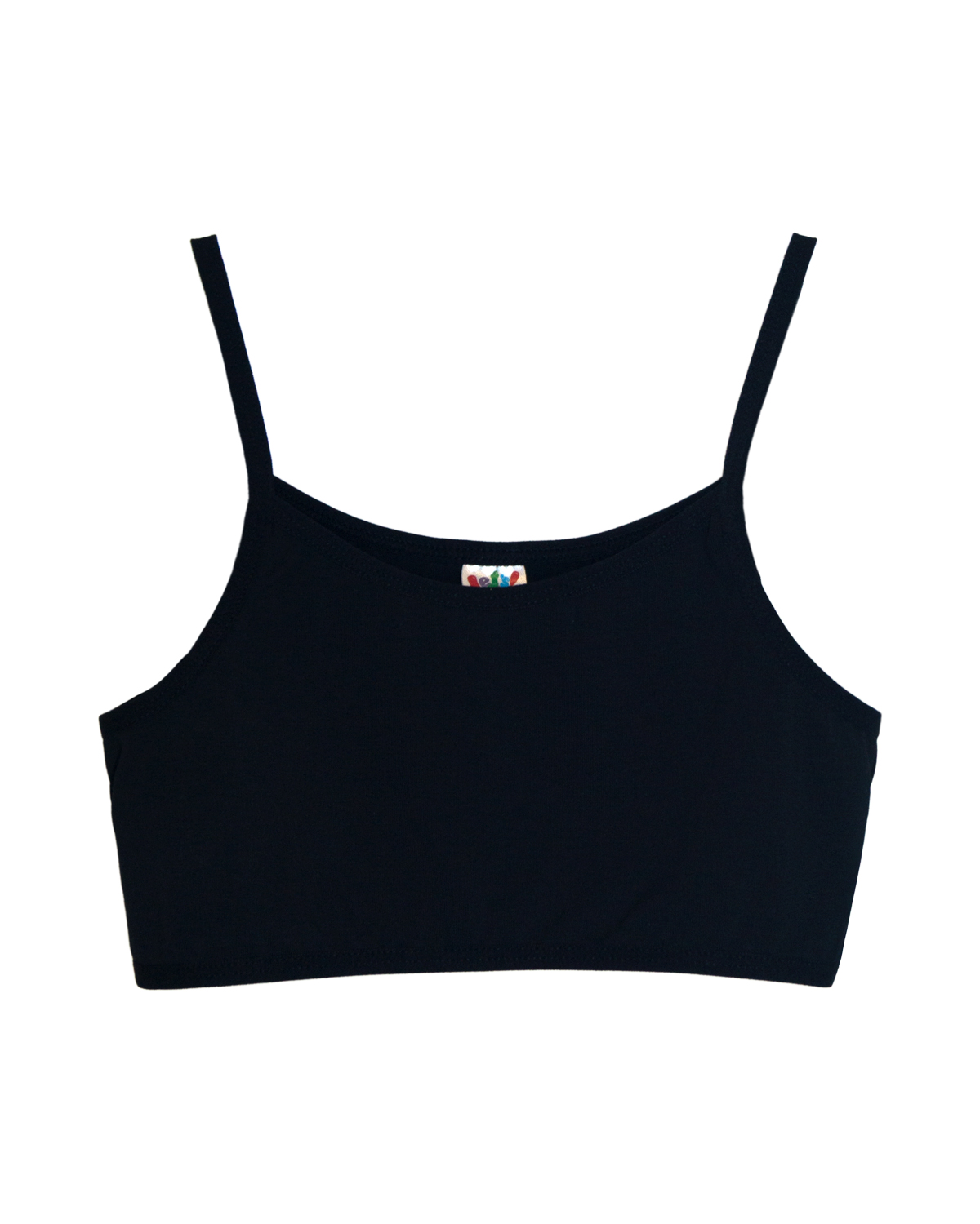 Майка для девочки на бретелях (бразильетка) Черный Let's go Хлопок с добавлением синтетики 21183 купить оптом в brandom.shop