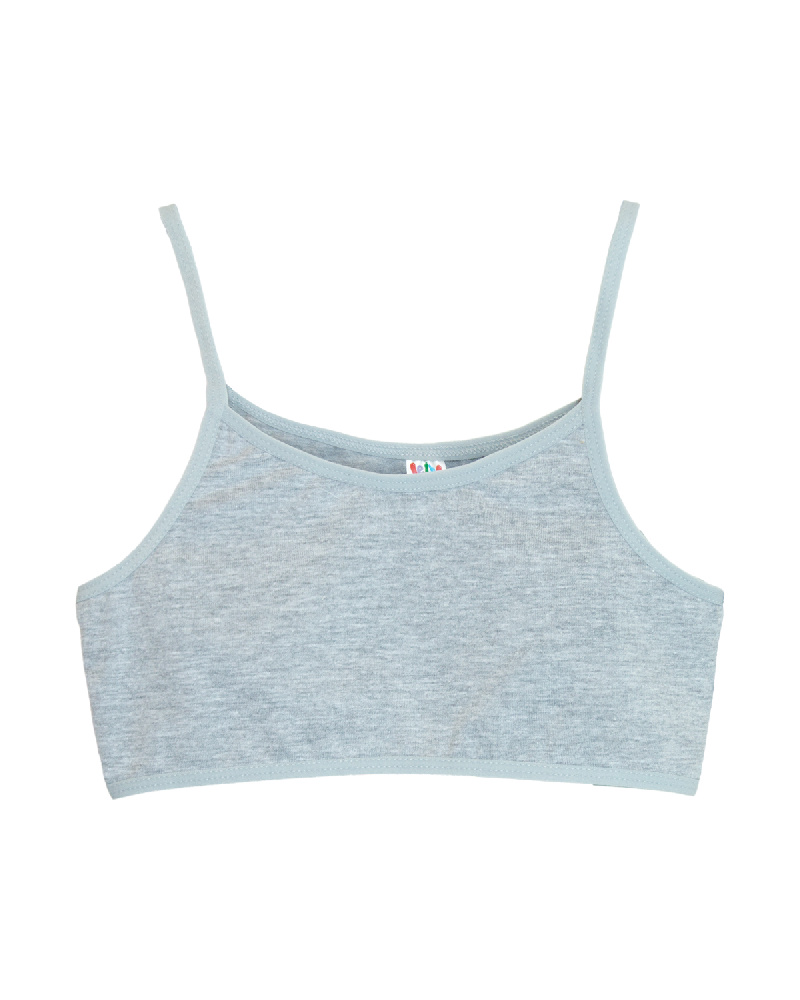 Майка для девочки на бретелях (бразильетка) из гладкокрашенной кулирки. Линия декольте и проймы окантованы эластичной тесьмой.
