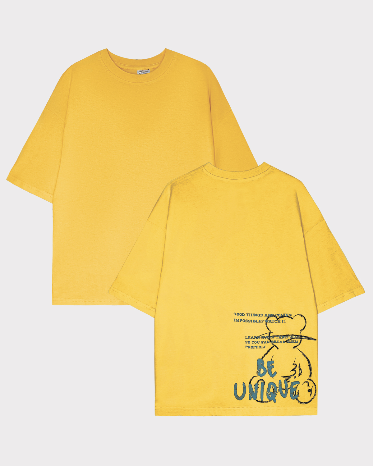 Футболка детская свободного силуэта (оверсайз) с коротким рукавом. Горловина круглая, обработана обтачкой горловиной из рибаны. Низ изделия и рукава обработаны швом вподгибку. На полочке принт Шелкография. Надпись переводится как "Будь уникальным;Грядут хорошие события;Невозможно?Наблюдай за этим;Тщательно изучай правила,чтобы правильно их нарушать".