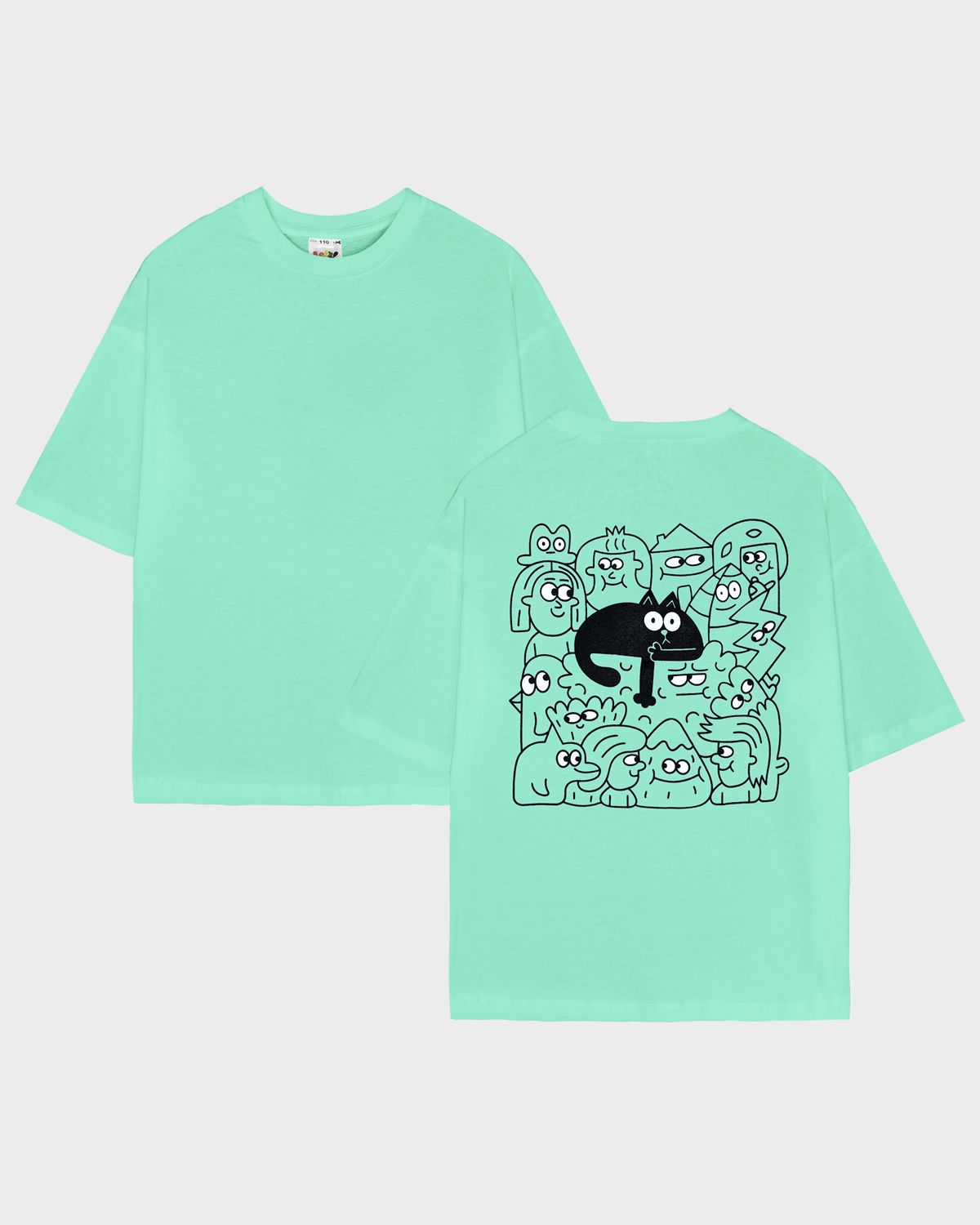 Футболка детская свободного силуэта (оверсайз) с коротким рукавом. Горловина круглая, обработана обтачкой горловиной из рибаны. Низ изделия и рукава обработаны швом вподгибку. На полочке и спинке принт Шелкография.