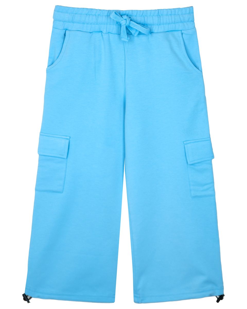 Брюки детские прямого силуэта с накладными карманами. Отрезной пояс, из основного полотна, с эластичной тесьмой внутри. По поясу брюк вставлен плоский утягивающий шнурок. Длина шнурка = длина пояса + 45 см для возможности завязывания. На передней половинке брюк карманы с отрезным бочком. На боковом срезе брюк располагается накладной карман с клапаном и встречной складкой на кармане, из основного полотна. Карман располагается с 2-х сторон симметрично. Низ изделия обработан швом в подгибку. В боковом шве петелька из основного полотна, в которую продевается кулиса.