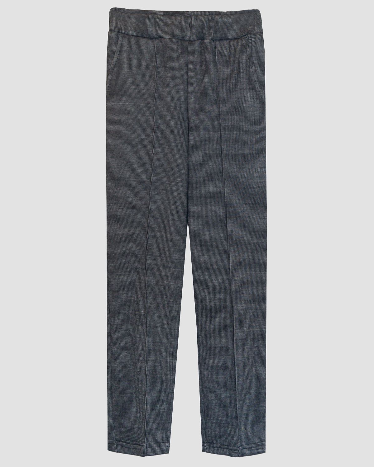 Брюки детские прямого силуэта, пояс отрезной, выполнен из основной ткани, с эластичной тесьмой внутри, тесьма закреплена в шов. На передней половинке брюк кант, который делит переднюю половинку на пополам. Низ изделия обработан швом вподгибку.