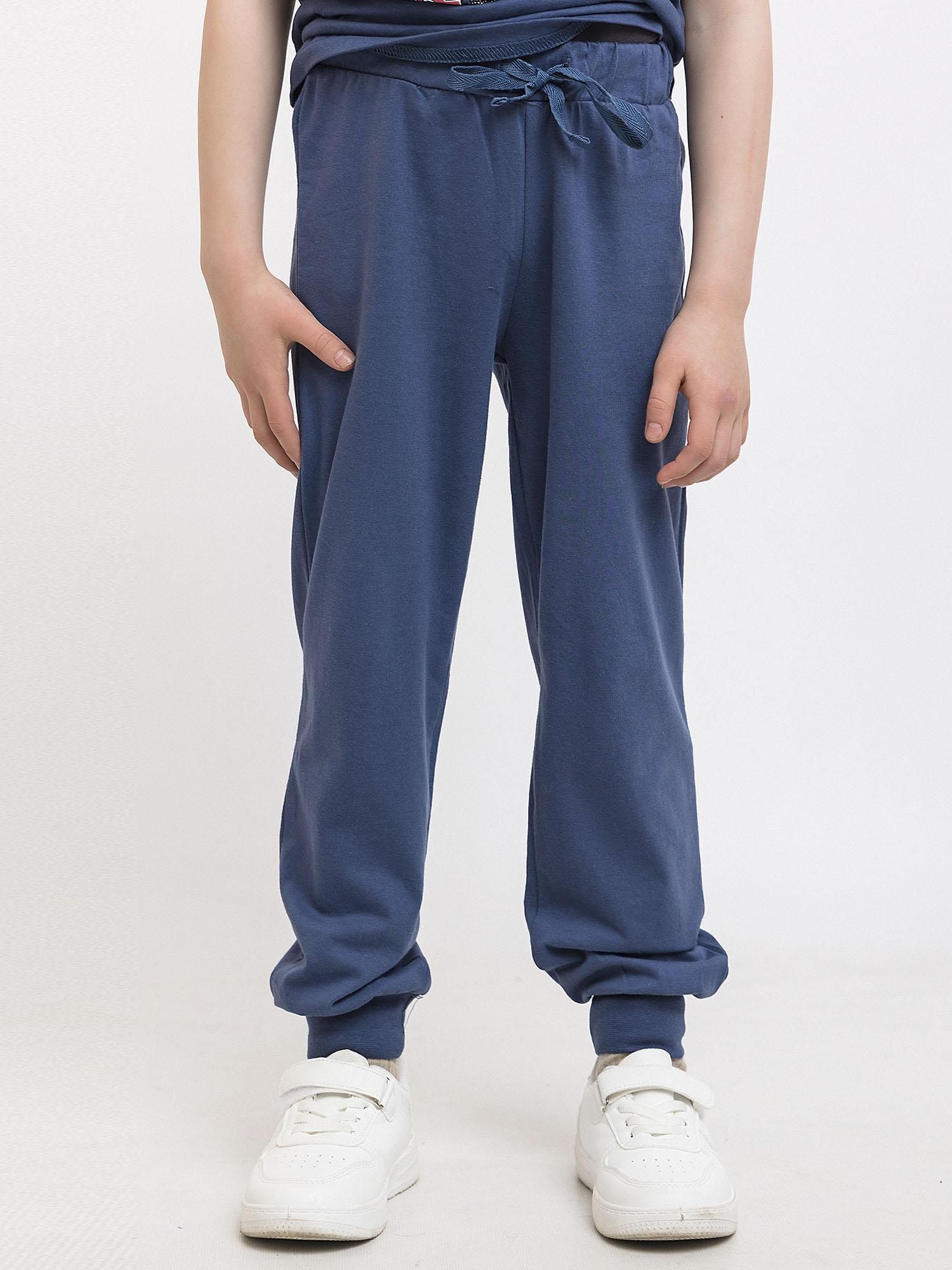 Трикотажные брюки для мальчика из петельчатого футера. Эластичный пояс на резинке регулируется по ширине с помощью шнурка, по бокам два удобных кармана, внизу эластичные манжеты.