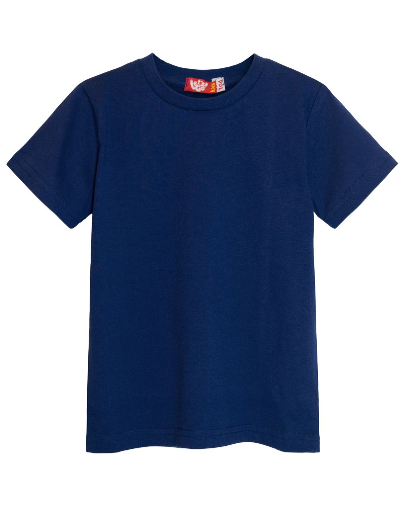 Футболка детская из кулирки. Горловина обработана рибаной. Росток спинки обработан бейкой из кулирки. Рукав втачной, короткий.