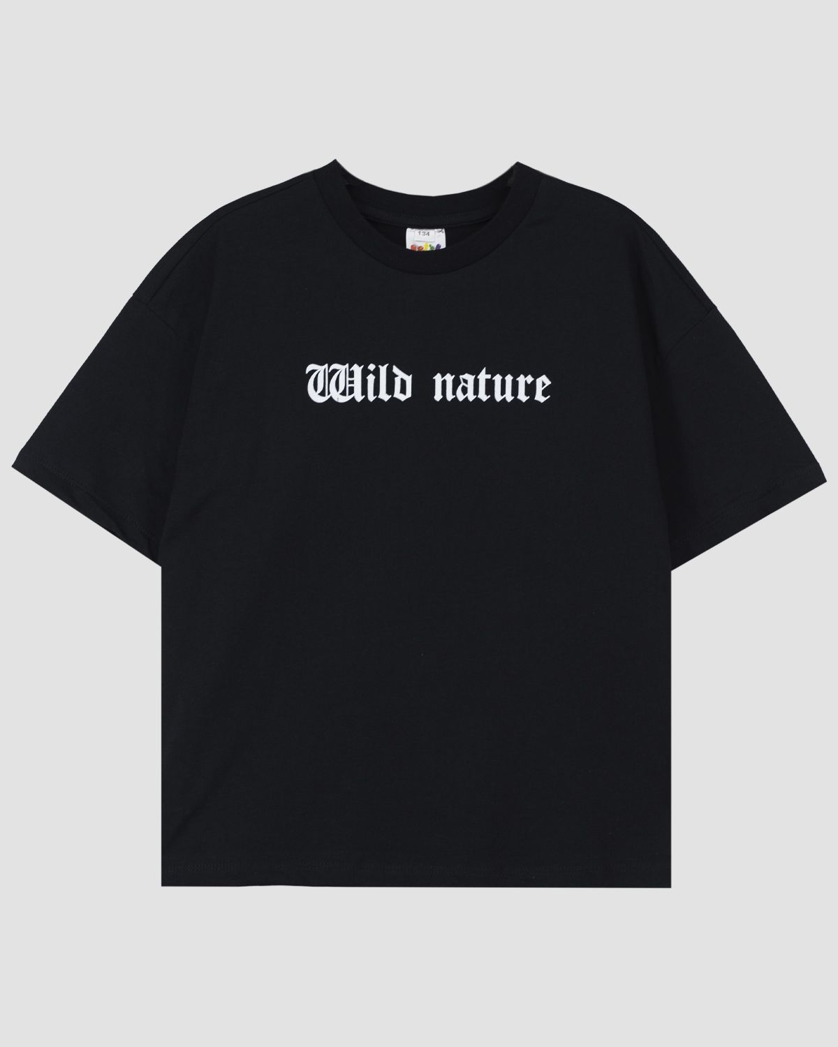 Футболка для мальчика прямого силуэта, со спущенным плечом коротким рукавом. Горловина круглая, обработана воротником из рибаны. Горловина спинки внутри укреплена бейкой из кулирки. По горловине полочки отделочная строчка. Низ изделия и рукавов обработан швом в подгибку. На полочке принт ШЕЛКОГРАФИЯ. Надпись переводится как "Дикая природа".