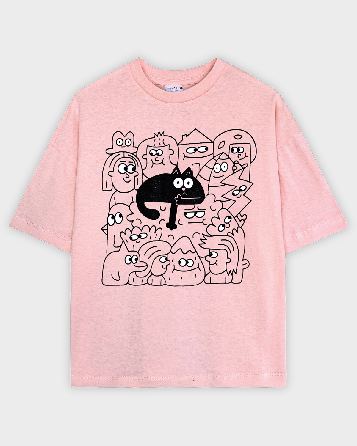 Футболка детская свободного силуэта (оверсайз) с коротким рукавом. Горловина круглая, обработана обтачкой из рибаны. Низ изделия и рукава обработаны швом вподгибку. На полочке принт Шелкография. Надпись переводится как "Удача следует за тобой".