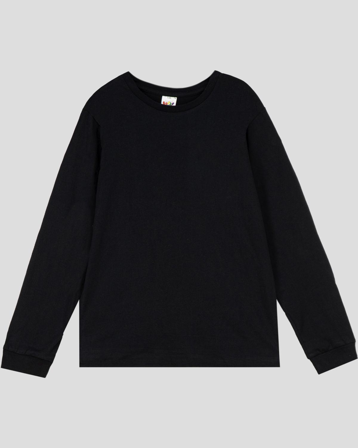 Фуфайка прямого силуэта, с втачным длинным рукавом. Горловина круглая обработана воротником из рибаны. По низу рукавов манжеты из рибаны. Низ изделия обработан швом в подгибку.