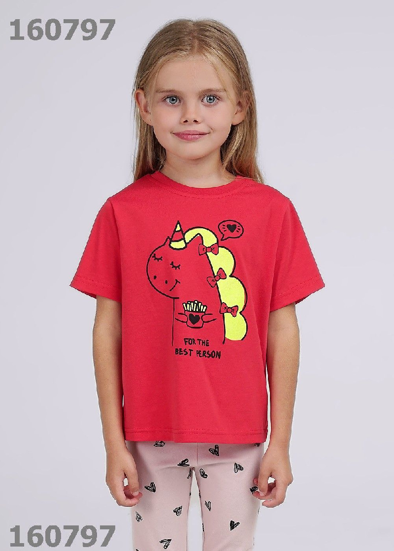 Футболка для девочки Красный Clever Хлопок 746748кд_п1 купить оптом в brandom.shop