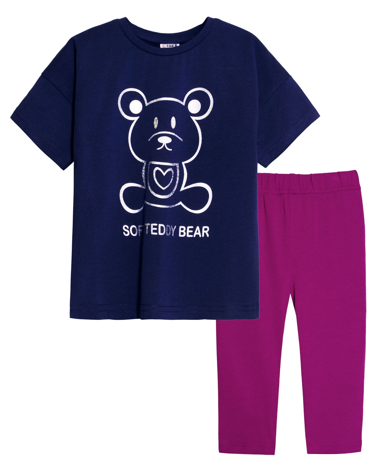 Комплект для девочки (футболка-бриджи) Синий Let's go Хлопок с добавлением синтетики 41104 купить оптом в brandom.shop