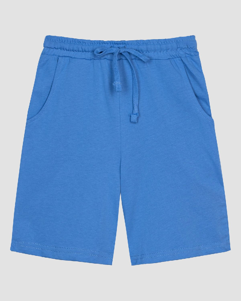 Шорты для девочки прямого силуэта. Пояс отрезной выполнен из основного полотна, с эластичной тесьмой внутри. По поясу шорт вставлен плоский утягивающий шнурок. На передних половинках шорт выполнены карманы с отрезным бочком. Низ изделия обработан швом вподгибку.