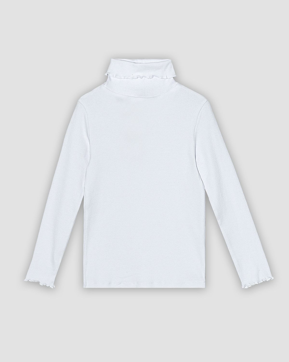 Водолазка для девочки прямого кроя с втачным длинным рукавом. Горловина круглая, обработана воротником-стойкой. Край вортника и низ рукава обработан закруткой. Низ изделия обработан швом в подгибку.