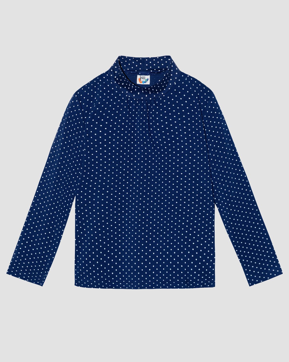 Свитер (водолазка) для девочки прямого покроя, с втачным длинным рукавом. Горловина круглая, обработана воротником-стойкой, из основного полотна. Рукав длинный втачной, низ рукава обработан швом в подгибку. На полочке по горловине, по окату рукава сборка. Низ изделия обработан швом в подгибку.