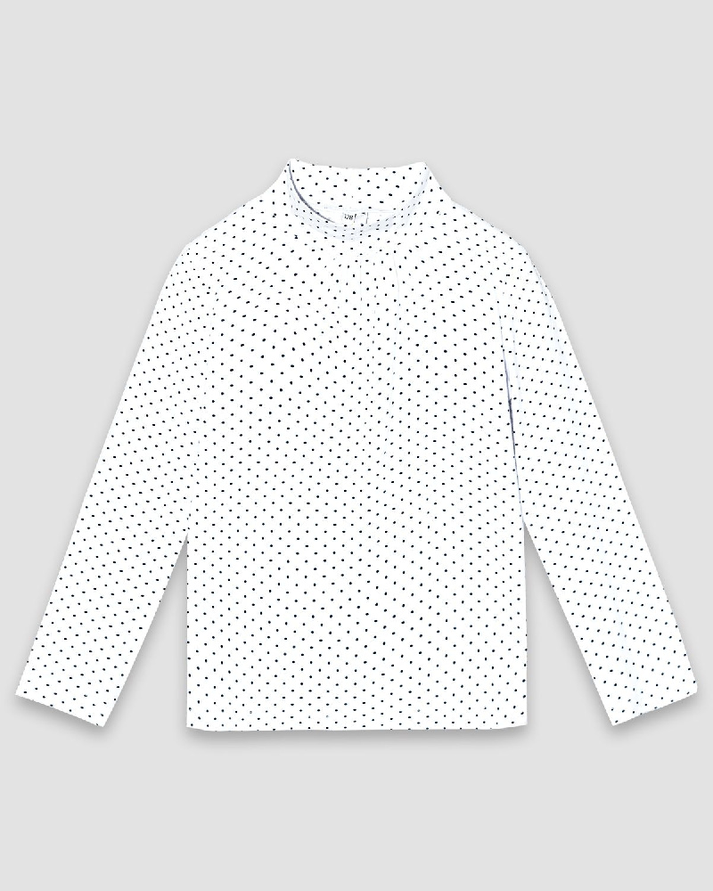 Свитер (водолазка) для девочки прямого покроя, с втачным длинным рукавом. Горловина круглая, обработана воротником-стойкой, из основного полотна. Рукав длинный втачной, низ рукава обработан швом в подгибку. На полочке по горловине, по окату рукава сборка. Низ изделия обработан швом в подгибку.