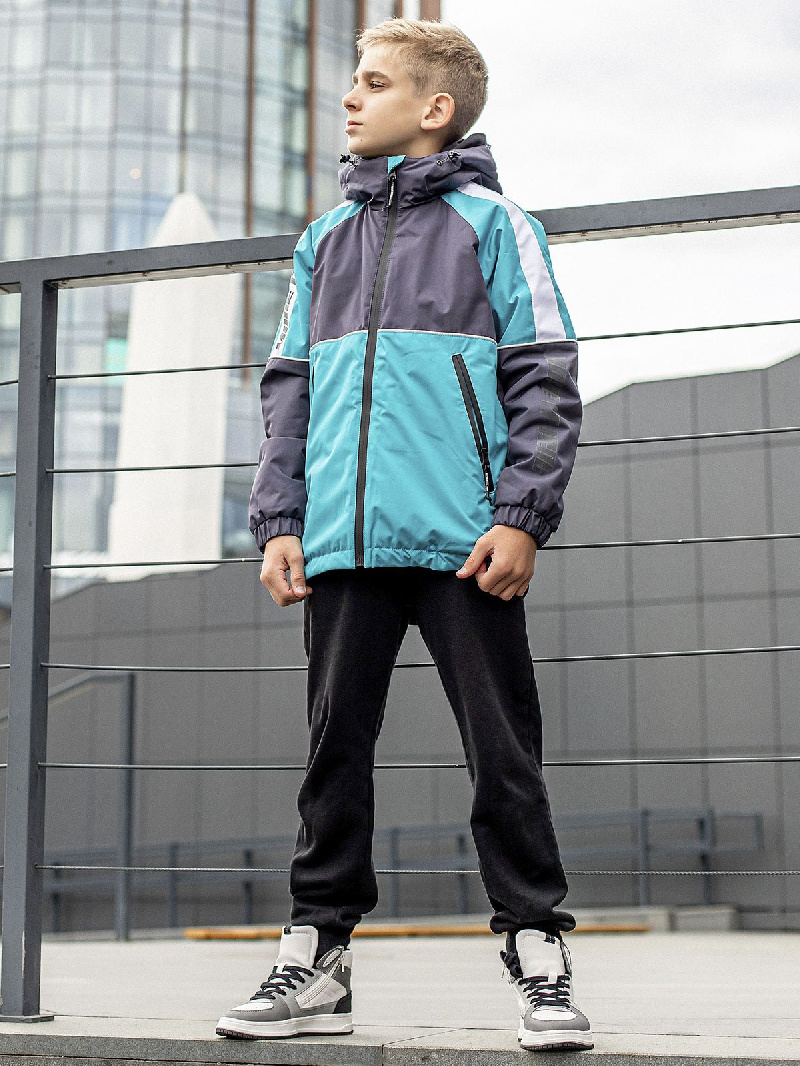 Утепленная куртка в сочетании 3х однотонов: черного, белого и морской бирюзы. Куртка "Бруно" спортивного кроя декорирована буквенным шрифтом и белым кантом. Центральная молния и молния на карманах водонепроницаемые, а внутренные утяжки и регулируемый по объему капюшон отлично защищает от ветра. светоотражающие элементы. эргономичный крой. регулировка капюшона, регулировка по низу куртки, по талии. Гладкая подкладка в рукавах. брендированная фурнитура.