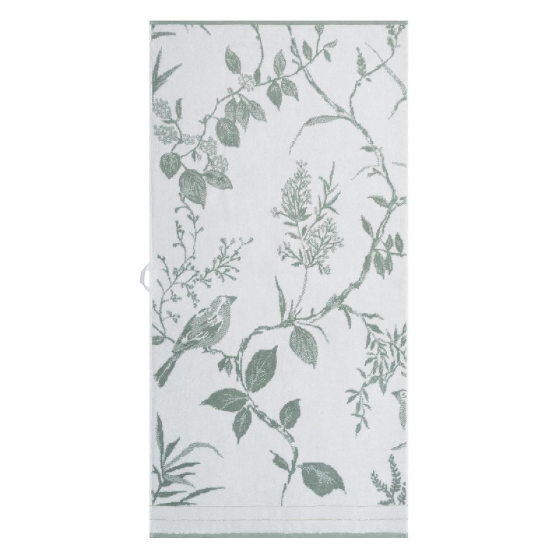 Махровое пестротканое полотенце выполнено из натуральной смесовой пряжи (60% бамбук + 40% хлопок). Бамбук в составе этого изделия отвечает за антибактериальные свойства и долговечность: оно не линяет после стирки и хорошо держит форму, сохраняя при этом свою мягкость. Изделие украшено приятным глазу растительным принтом и выполнено в сочетании белого цвета и зеленого оттенка «туманный папоротник». Благодаря разработке (чередованию петель двух основных цветов) в принте создается визуальный эффект дополнительного оттенка. В нижней части изделие украшено саржевыми косичками зеленого оттенка хэмлок. Полотенце имеет петельку из репсовой ленты для удобного хранения в ванной.