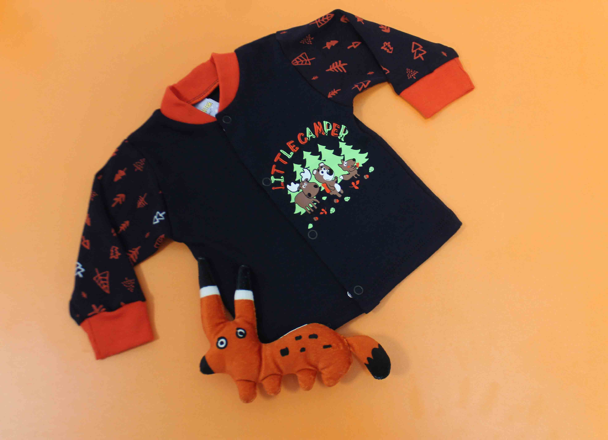 Футболка - лонгслив. Длинный рукав. На плечеке две кнопочки для удобства одевания. Украшен принтом на водной основе.