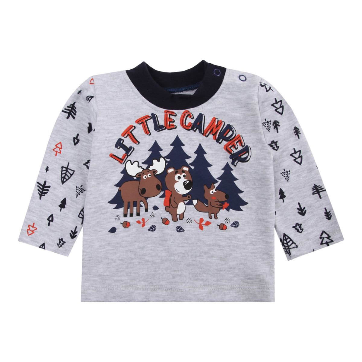 Футболка - лонгслив. Длинный рукав. На плечеке две кнопочки для удобства одевания. Украшен принтом на водной основе.