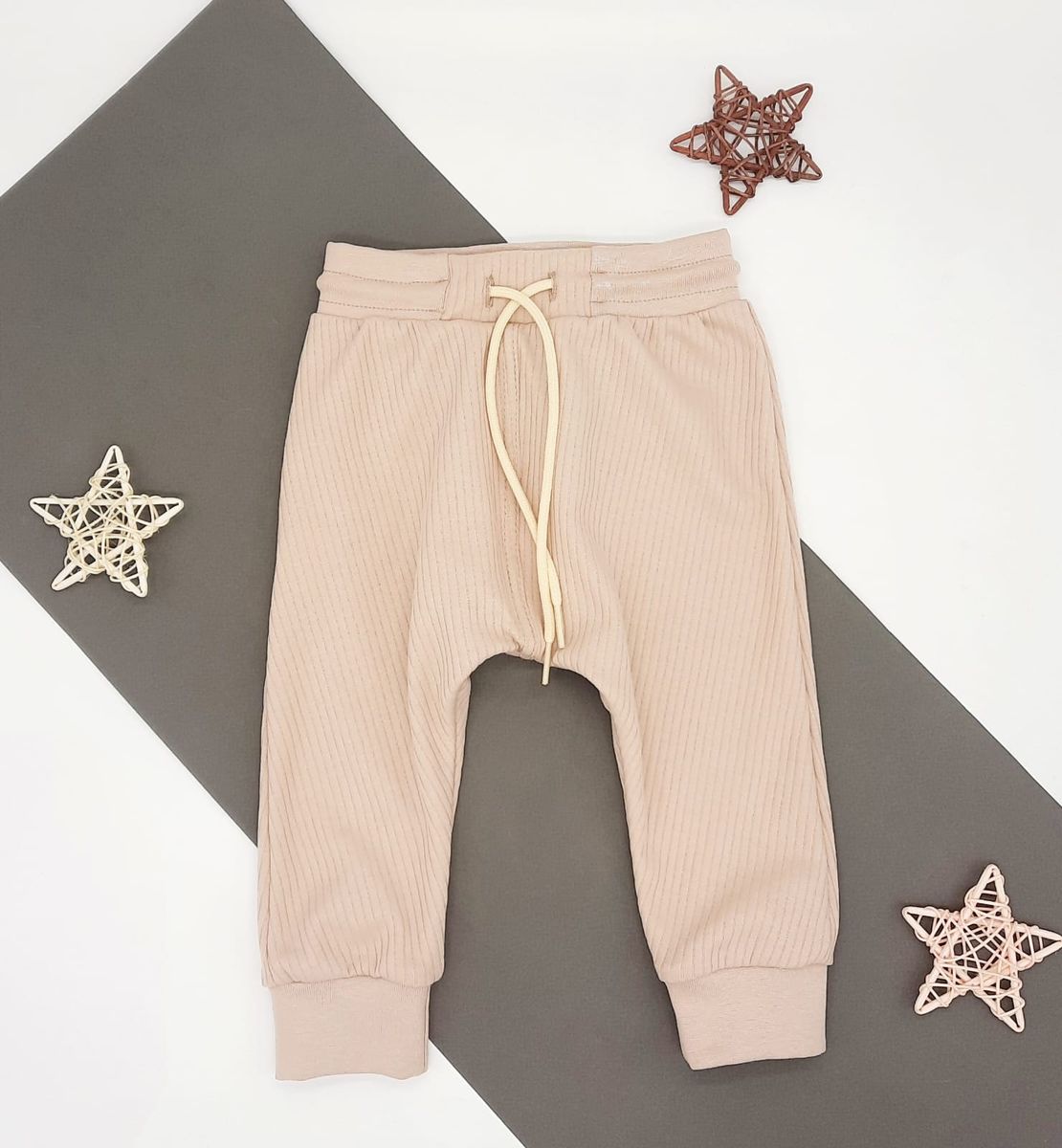 Брюки для новорождённых из мягкого, эластичного трикотажа, произведенного из натурального хлопка. Пояс на резинке. Все трикотажные полотна производятся в соответсвии с нормами Швейцарского сертификата ЭкоТекс.