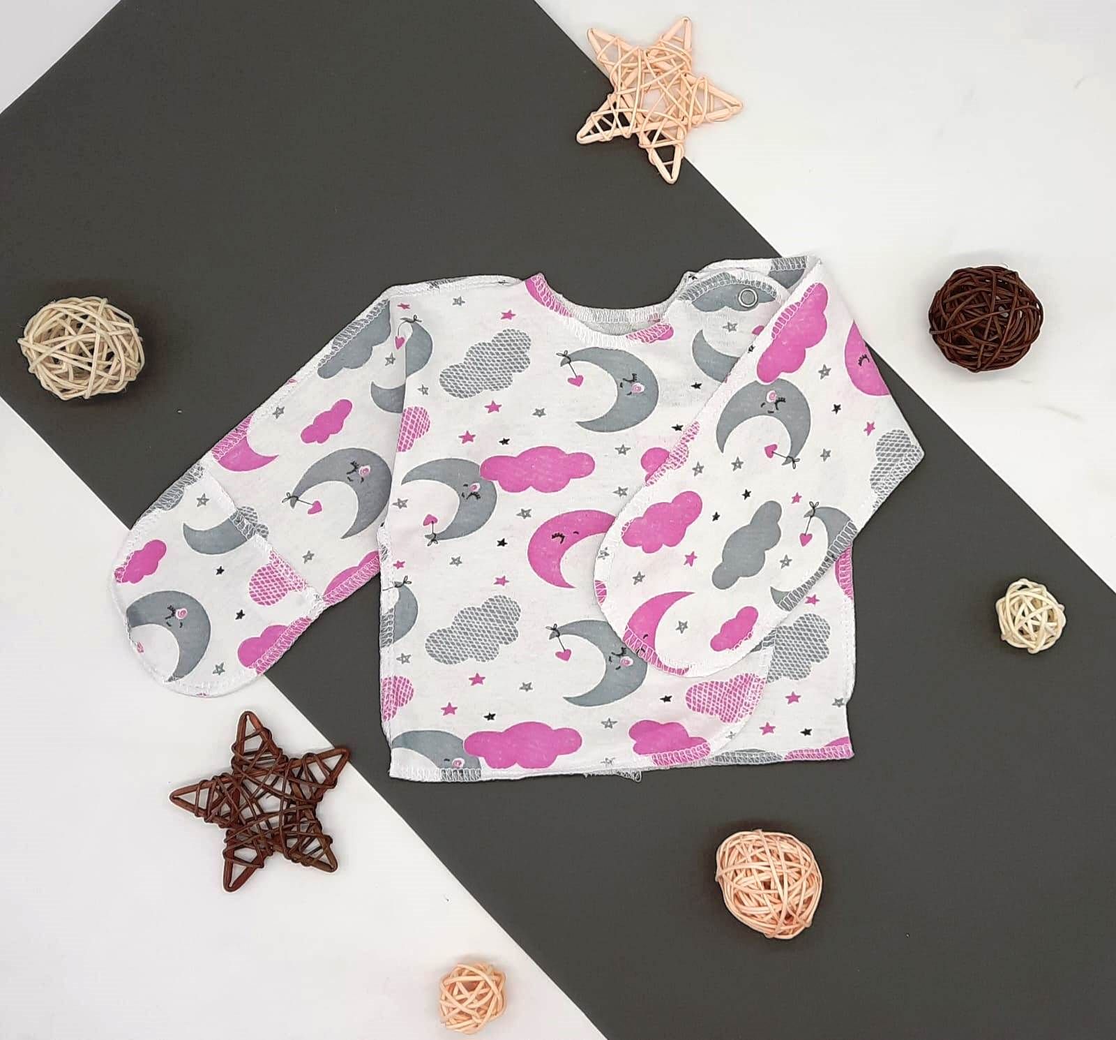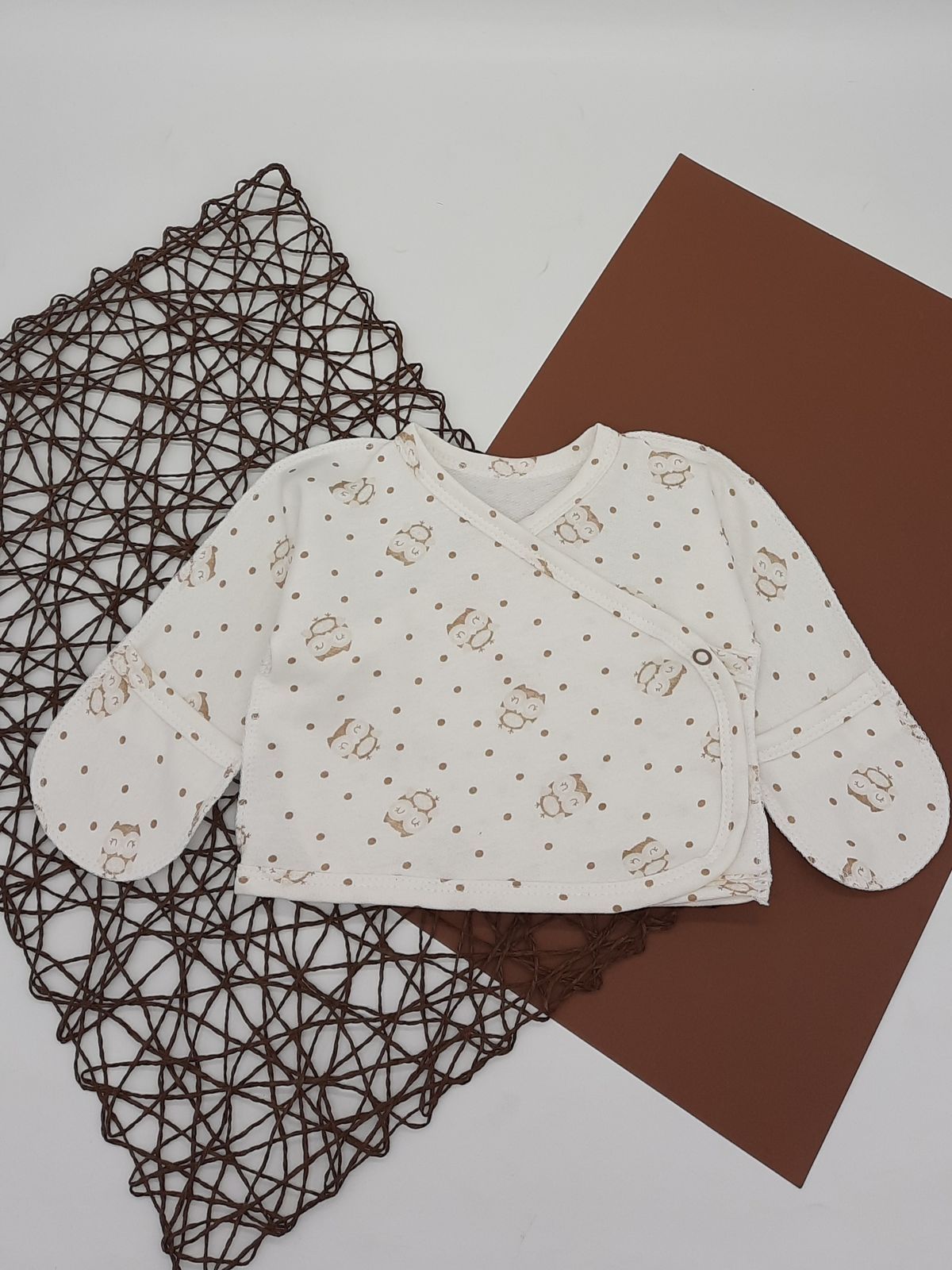 Тонкая распашонка с одной кнопкой и рукавом-трансформером, швы на лицевую сторону. Отличный повседневный вариант.