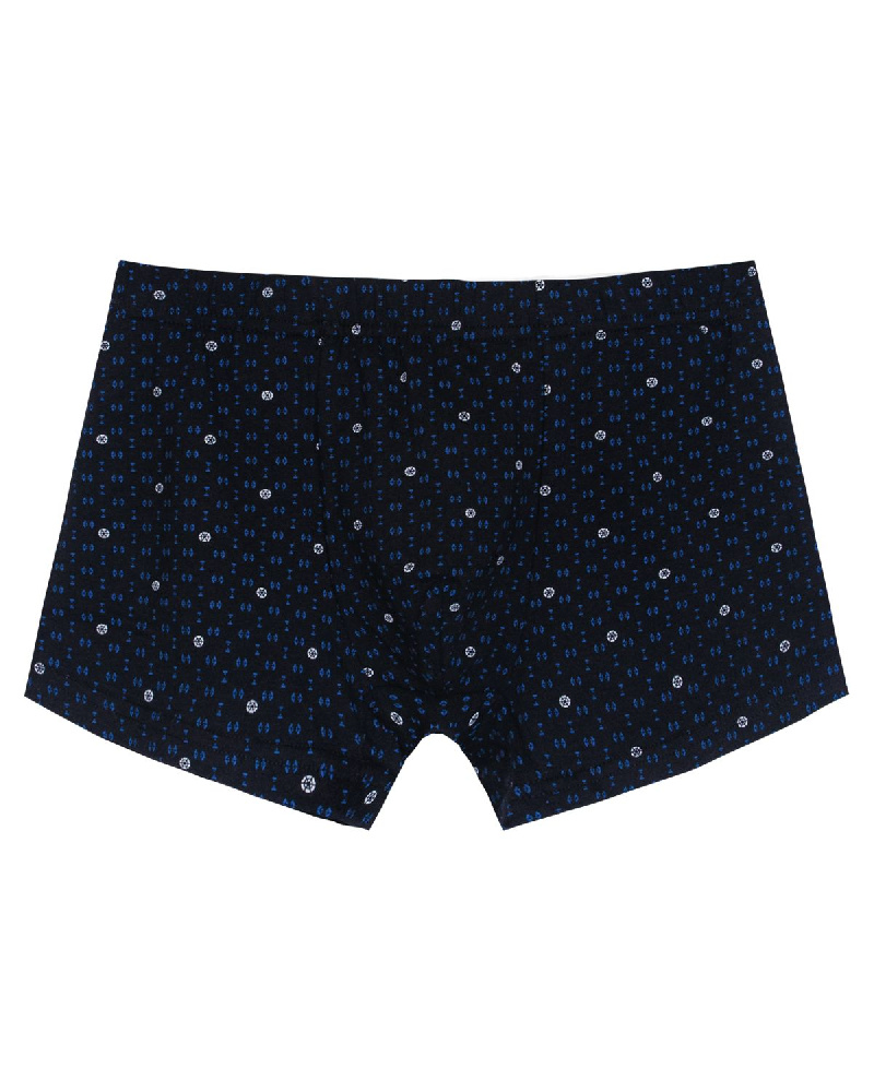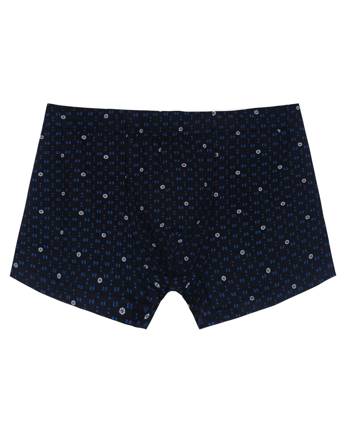 Трусы-боксеры мужские, из набивного полотна , прямого силуэта. Пояс цельнокроенный с эластичной тесьмой, закрепленной в шов. На гульфике присутствует вытачка. Низ штанин обработан швом в подгибку.
