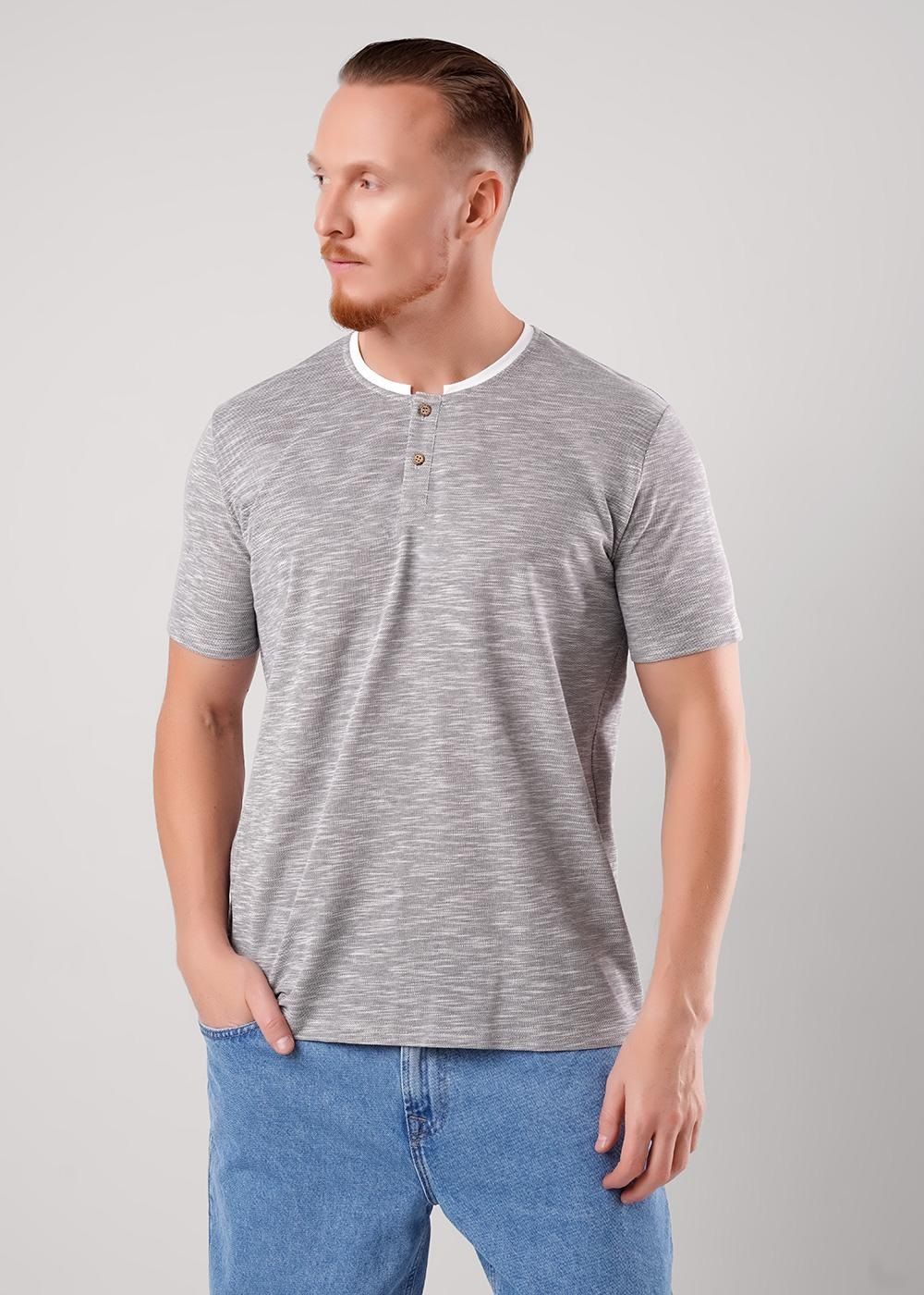 Футболка мужская с круглым вырезом горловины и коротким втачным рукавом из фактурного полотна пике. Изделие дополняет имиджевым принтом. Подойдет к любым брюкам или джинсам.