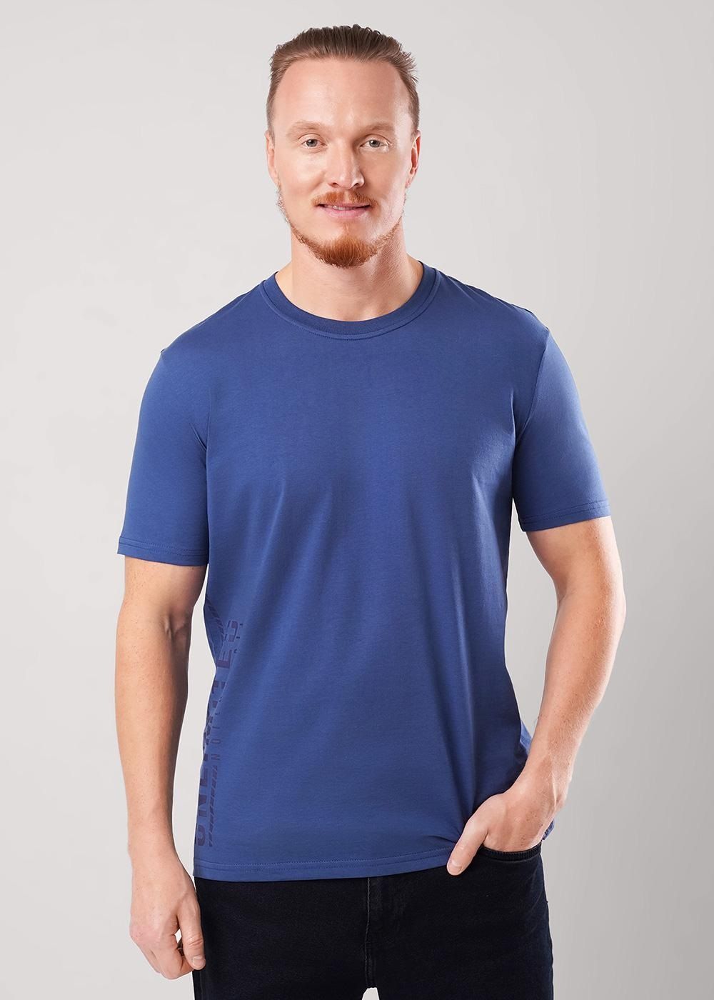 Футболка из дышащего хлопкового полотна с округлой горловиной. Модель со шрифтовым имиджевым принтом. Отличный вариант для образа в спортивном стиле.