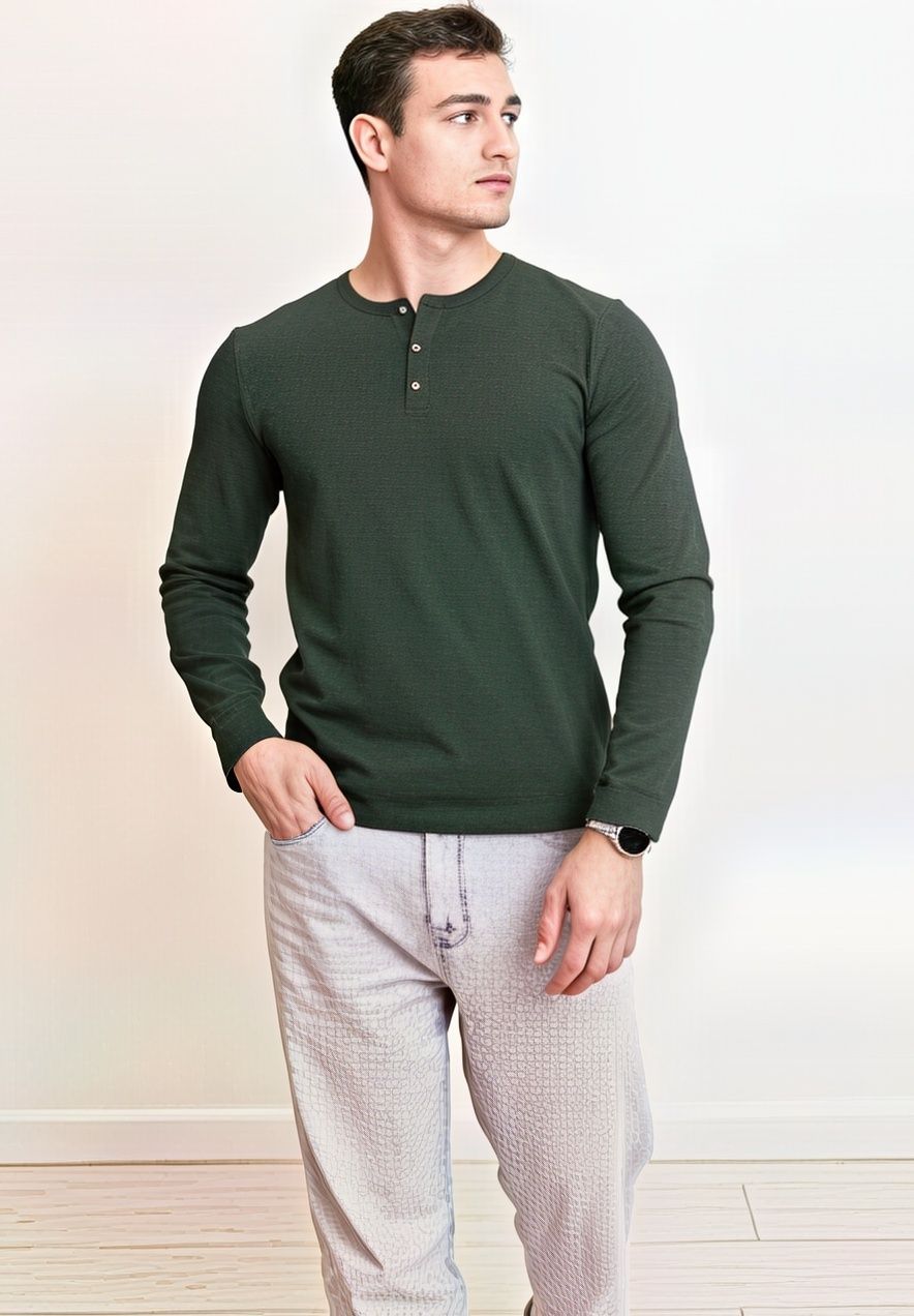 Лонгслив мужской с длинным рукавом, округлой необработанной горловиной на планке из фактурного полотна флам. Изделие дополнено имиджевой фурнитурой. Данная модель прекрасно комбинируется с джинсами или шортами благодаря своей универсальности.