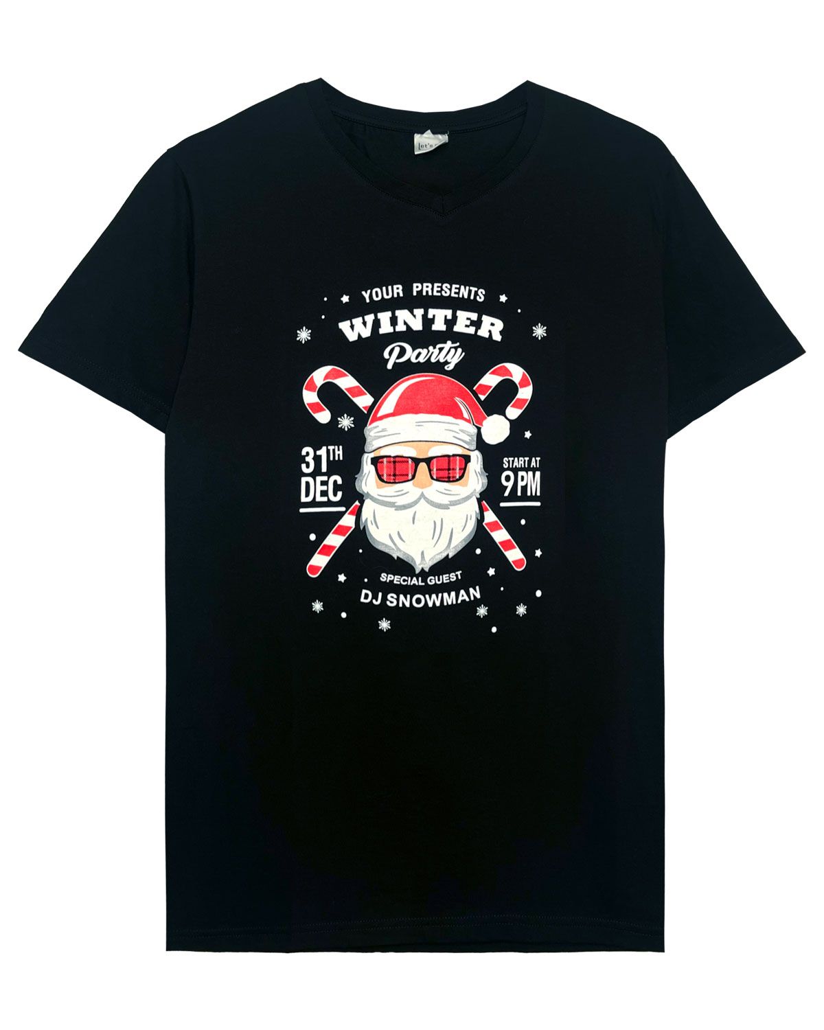 Футболка взрослая прямого силуэта с втачным коротким рукавом. Горловина V-образная форма, обработана воротником из рибаны. По горловне полочки декоративная отстрочка.Низ изделия и рукавов обработан швом в подгибку. Модель рассчитана на рост 176-182. На передней полочке принт с шелкографией.