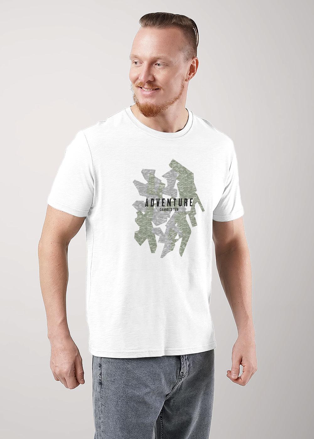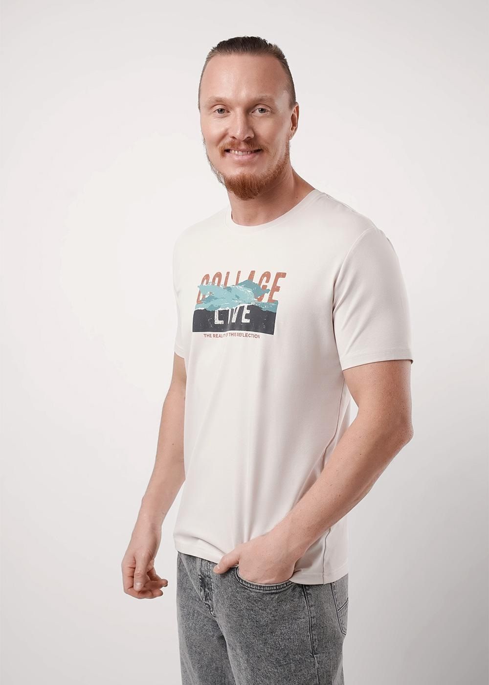 Футболка с круглой горловиной из фактурного полотна. Изделие дополняет имиджевый принт инжексион. Данная модель прекрасно впишется в любой гардероб и составит образ с брюками или джинсами.
