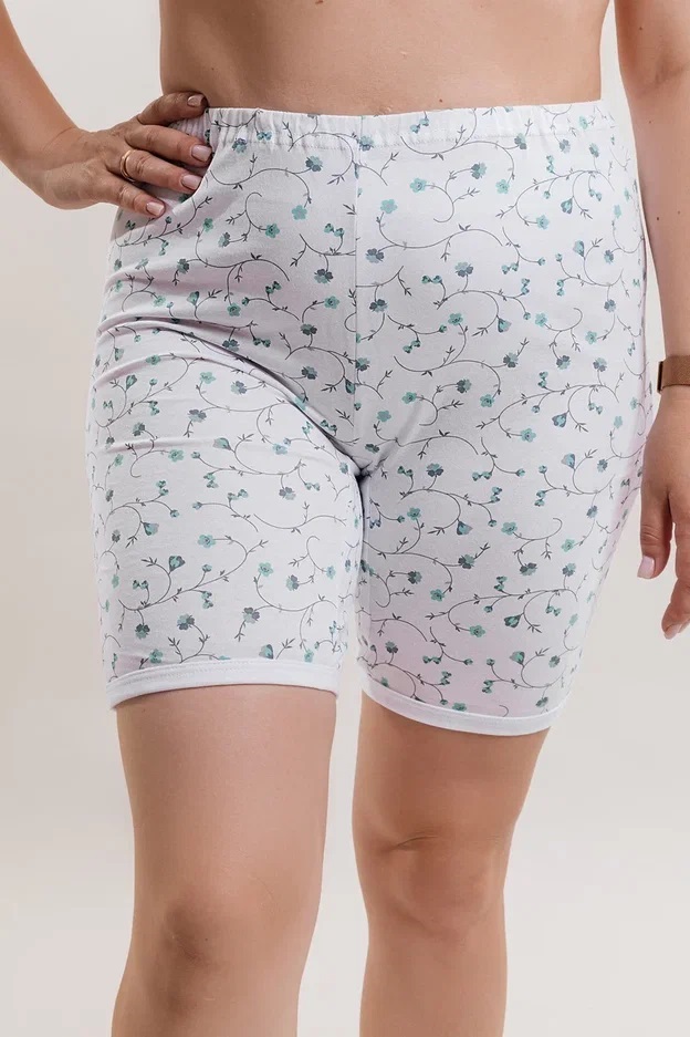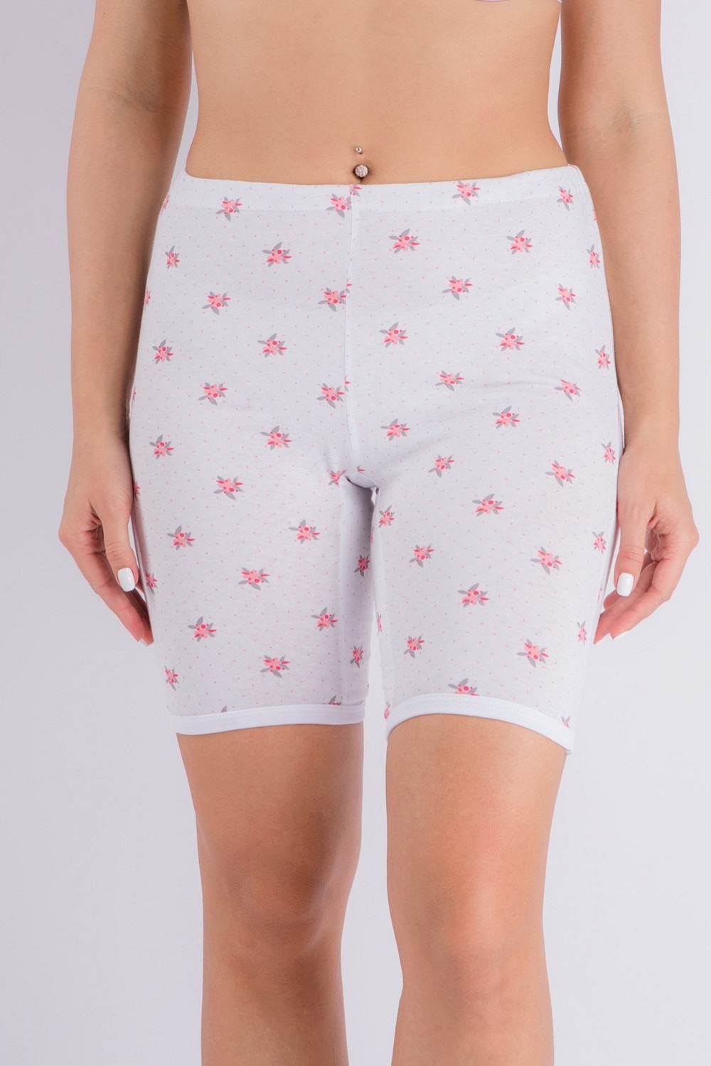 Трусы шорты женские из эластичного хлопкового полотна. Обработка краев по талии - окантовочная резинка, по ноге - подгибка. По переду атласный бант. .
