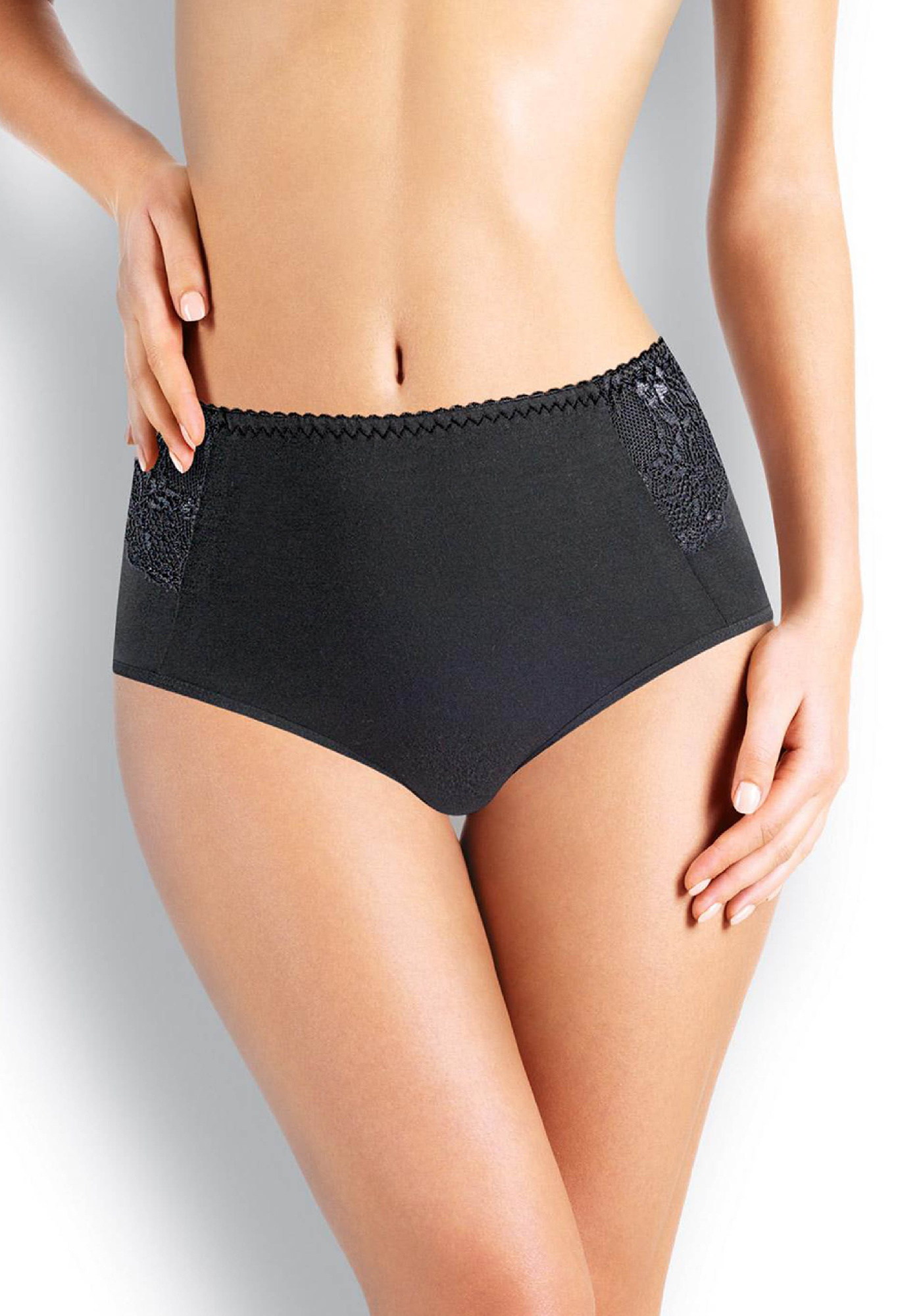 Трусы макси утяжка женские из плотного эластичного хлопкового полотна. По переду отделка кружевом и двойной слой основного полотна. Обработка краев - ажурной резинкой с фестоном.