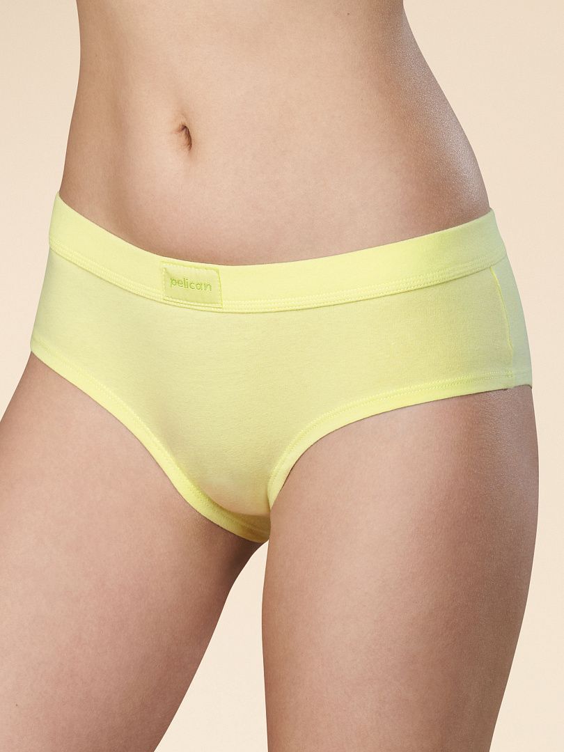 Трусы бикини женские из эластичного хлопкового полотна. Обработка краев по талии - окантовочная резинка, по ноге - полуокантовка. По переду атласный бант..