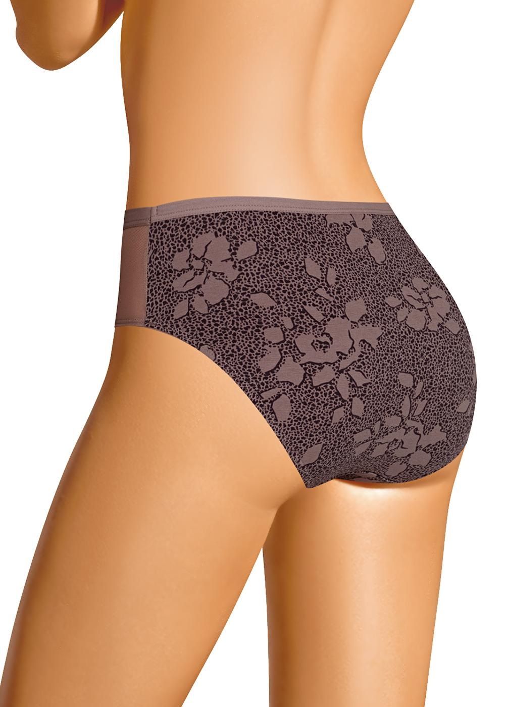 Трусы слипы женские из эластичного хлопкового полотна. Обработка краев по талии - окантовочная резинка, по ноге - полуокантовка. По переду боковые вставки из сетки, атласный бант..