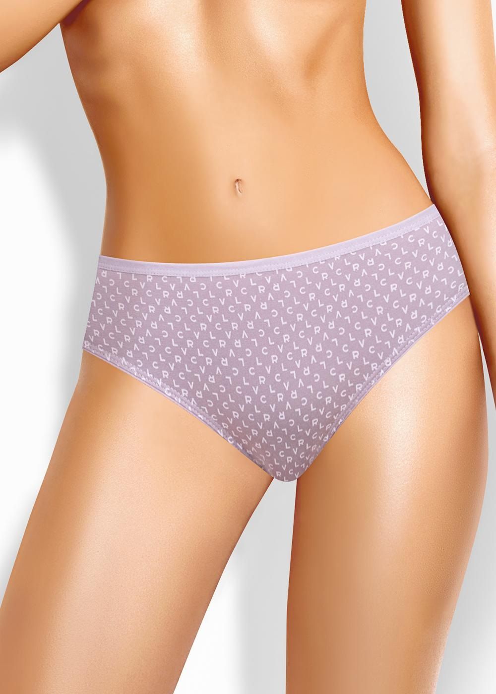 Трусы слипы женские из эластичного хлопкового полотна. Обработка краев по талии - окантовочная резинка с принтом, по ноге - полуокантовка. Спереди принт.