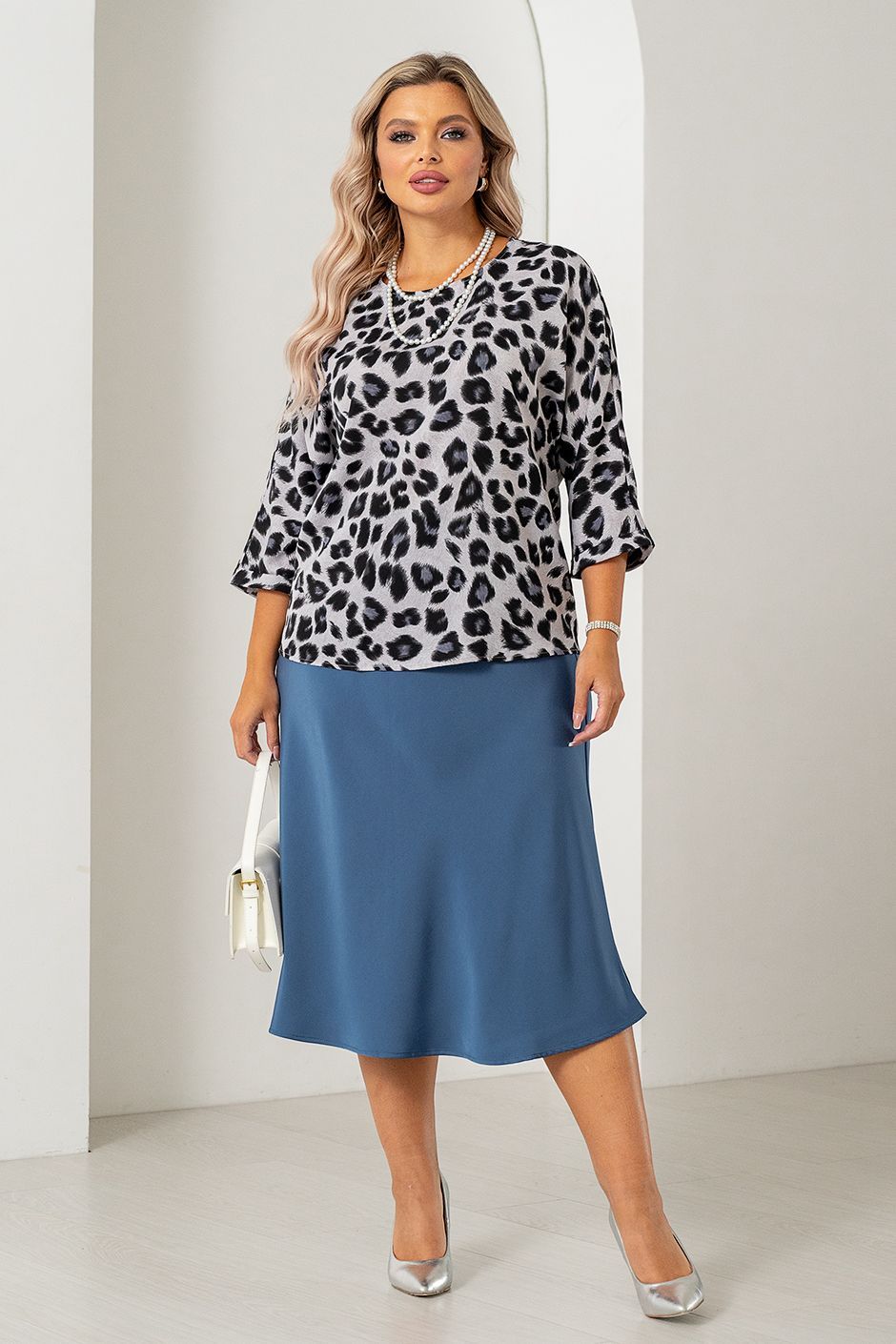 Сорочка молодежная из трикотажного полотна «кулирка» с набивным рисунком, слегка расширенная книзу, на узких бретелях, с разрезом в левом боковом шве. Вырез горловины переда, спинки, разрез в боковом шве - отделаны кружевом. На боковом шве выше разреза прикреплен декоративный бантик из узкой атласной ленты в тон кружеву.