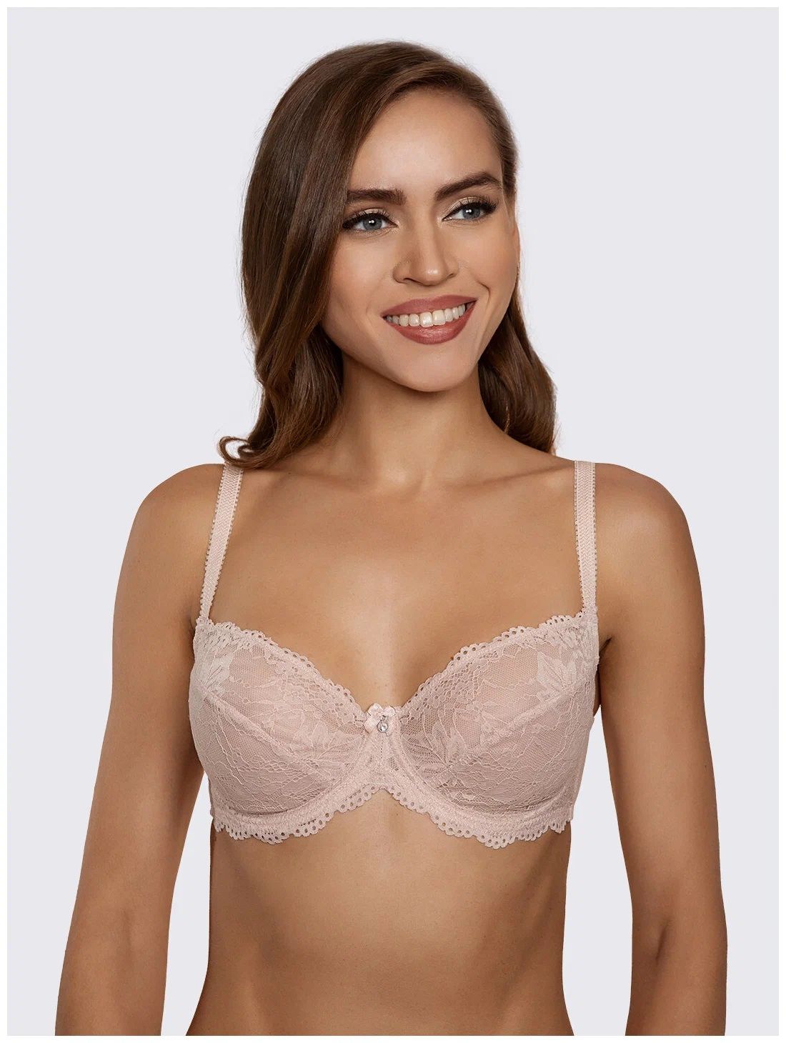 Бюстгальтер с формованными чашками от бренда Madamoda. Элегантная комбинация нежного модала с изящной кружевной отделкой по краю чашки. Стильный бантик и «капелька» придают модели еще большую изысканность. Представлена полнота "D" и "E".