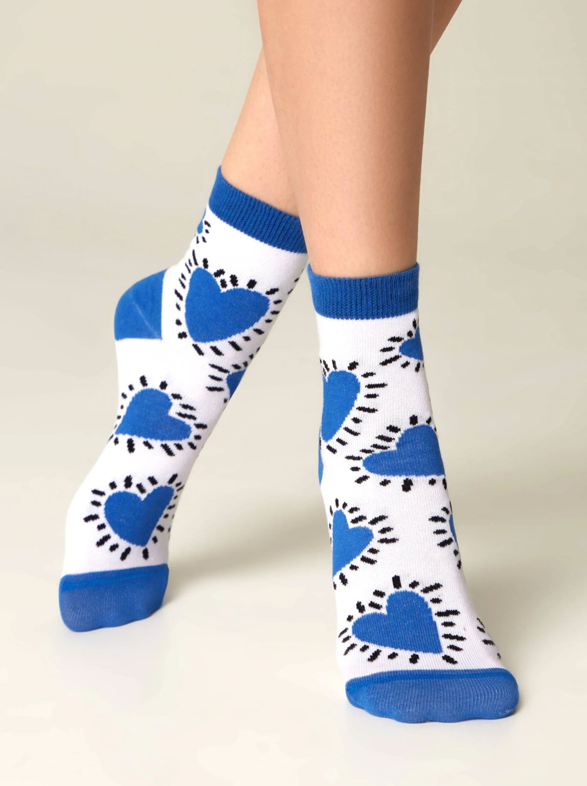 Комфортные теплые махровые женские носки из хлопка, с рельефными рисунками.