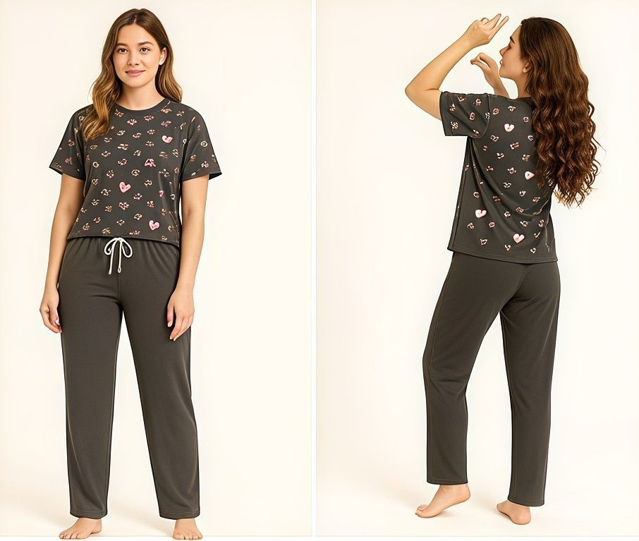 Джемпер взрослый, свободного кроя со спущенной линией плеча и длинным рукавом. Горловина круглая, обработана обтачкой из кашкорсе. По пройме и рукаву отделочная строчка на плоскошовной машине, припуск смотрит на полочку и спинку. Низ рукава и низ изделия заканчивается манжетом из кашкорсе. На полочке принт DTF.