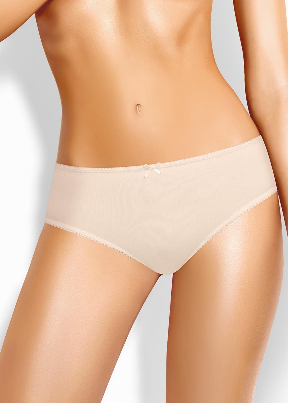 Трусы слипы женские из эластичного хлопкового полотна. Обработка краев по талии - окантовочная резинка, по ноге - полуокантовка. По переду атласный бант.
